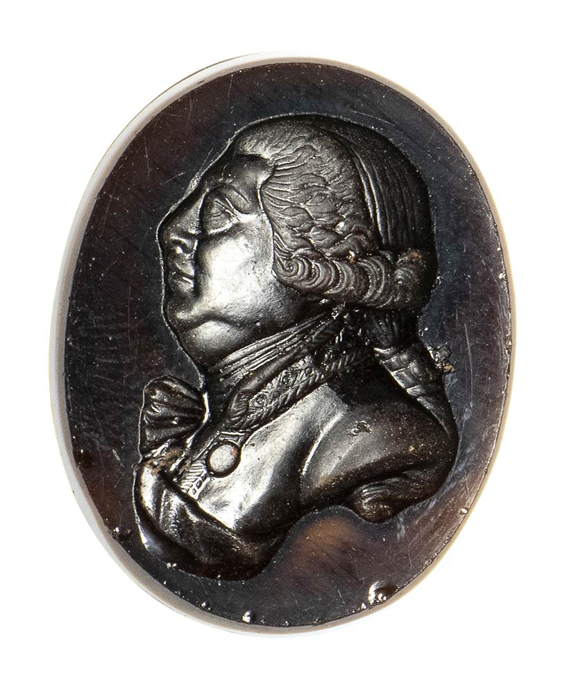 A two layer glass impression. Portrait of king George III.<br><br>19th century.