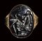 A dark glass Tassie impression set in a gold ring. Leda and the Swan.