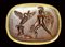 The hero strips Cycnus of his armor, which is transformed into a swan. Achilles faces left, holding the sword and helmet of Cycnus, flying off his armor. Extraordinary scene of metamorphosis from te Ovid’s Metamorphosis. In the field, the signature: ΑΔΜΟΝ.