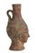 A girl with large almond-shaped eyes with impressed pupils, and incised details of the lashes and brows, wearing a diamond-shaped pendant between the eyebrows, her hair pulled up in a central top-knot and dressed in horizontal ridges around the top of the head, the funnel spout emerging from the top of the head, with an handle at the back.