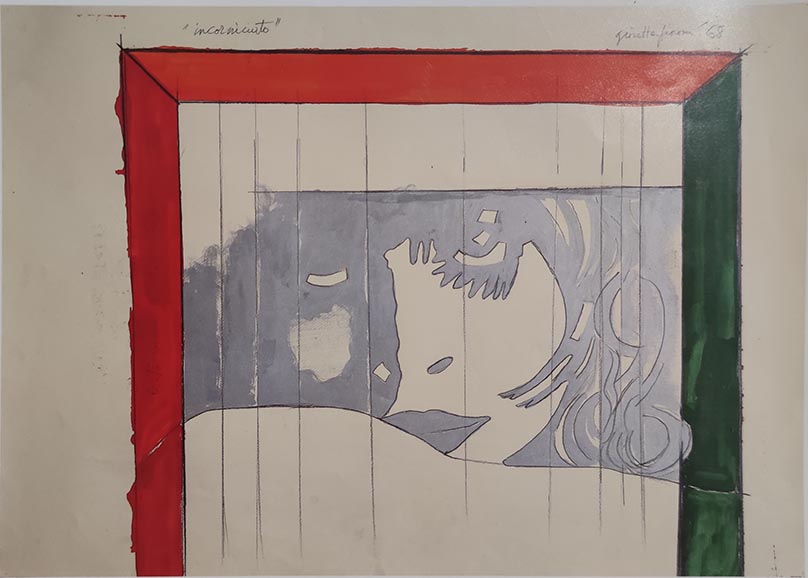 Giosetta Fioroni, Tecnica mista su carta, 70x100 cm, Incorniciato, 1968, Autentica dell'artista su foto