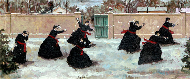 CAFFE' Nino (Alfedena 1909 - Pesaro 1975) Palle di neve, 1954 olio su tela, cm. 15 x 35 Autentica dell'archivio Nino Caffè, a cura di Giorgio Borghi, con n° I/1002BI Firma 'Caffè' (in basso al centro) #Etichetta dell'archivio Nino Caffè (al retro)