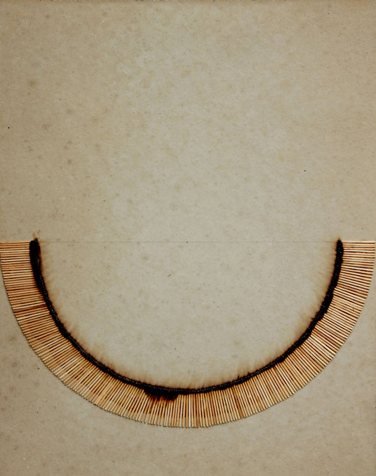 AUBERTIN Bernard (Fontenay-aux-Roses 1934) Dessin de feu, 1974 fiammiferi bruciati su cartoncino, cm. 64 x 49 Titolo, data, firma 'Dessin de feu, 1974, Bernard Aubertin' (al retro)