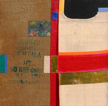 tessuti, terre, oro in foglia e olio su tela, cm. 100 x 100