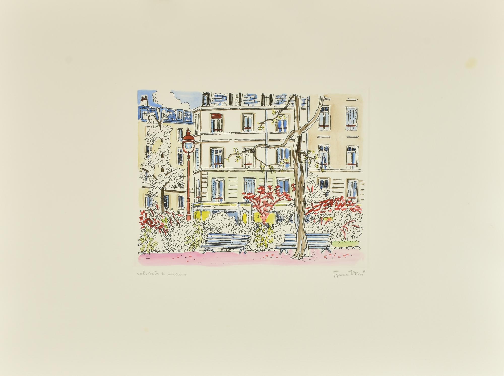Orfeo Tamburi SCORCIO PARIGINO incisione su carta colorata a mano, battuta cm...