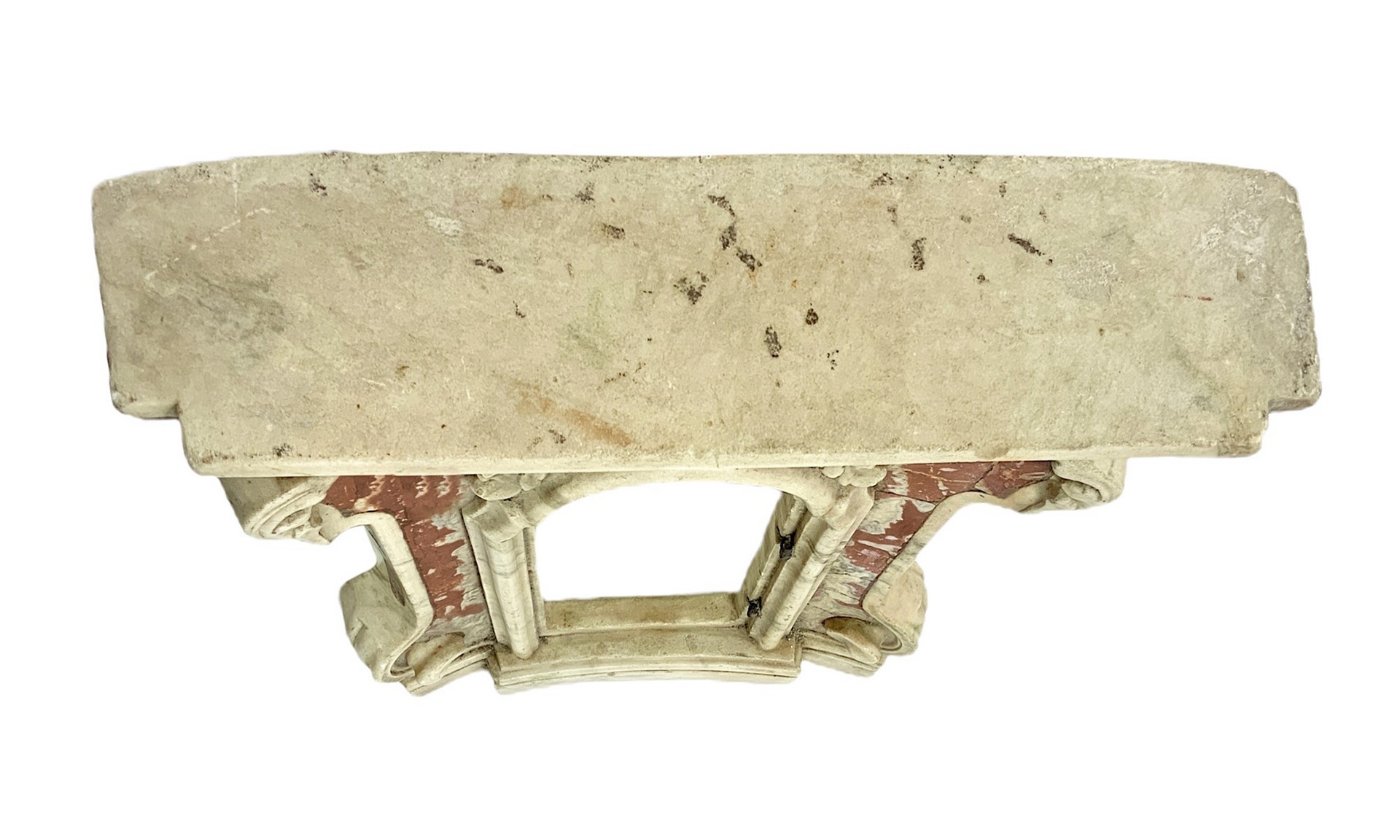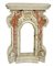 Fronte di edicola in marmo bianco e applicazioni di diaspri siciliani in rosso, Sicilia, XVIII sec., XVIII secolo H cm 59 base cm 40, mensola profondità cm 10.