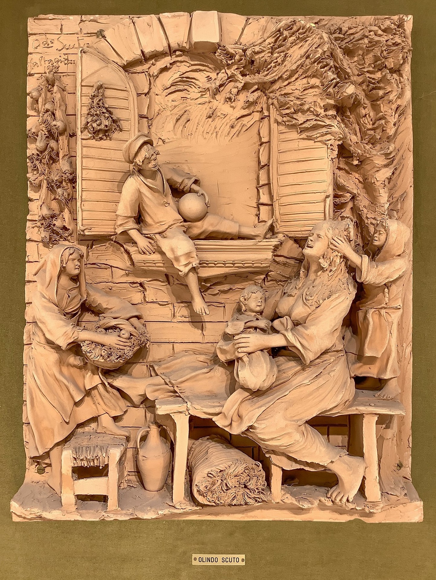 Olindo Scuto (Catlagirone 1921-2017) - Altorilievo in terracotta con cinque personaggi
