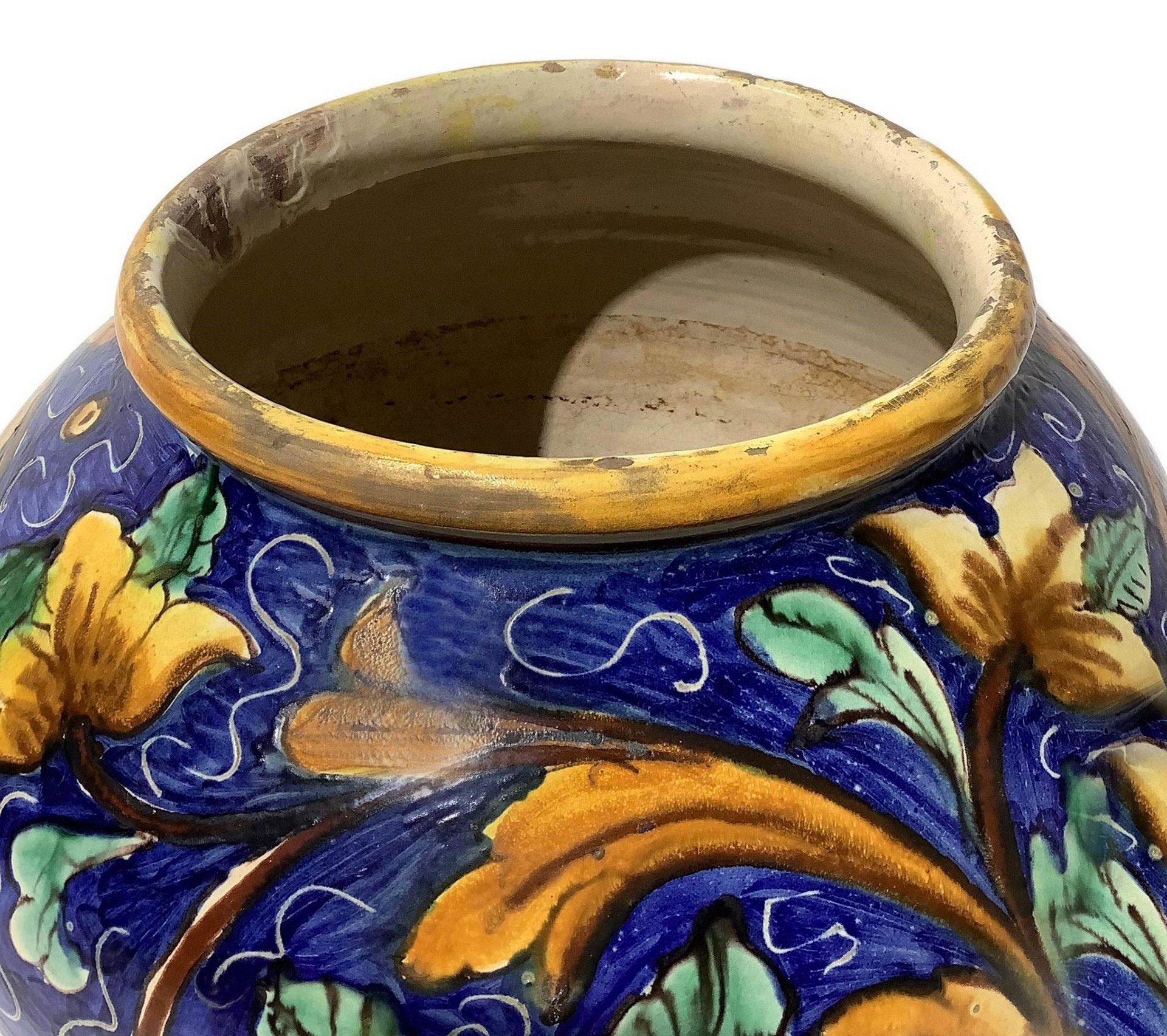 Bottega Di Bartolo - Boccia in ceramica di Caltagirone, Inizi 20° secolo H cm 36 Decorazione floreale a foglie larghe nei modi del XIX secolo su fondo blu cobalto.