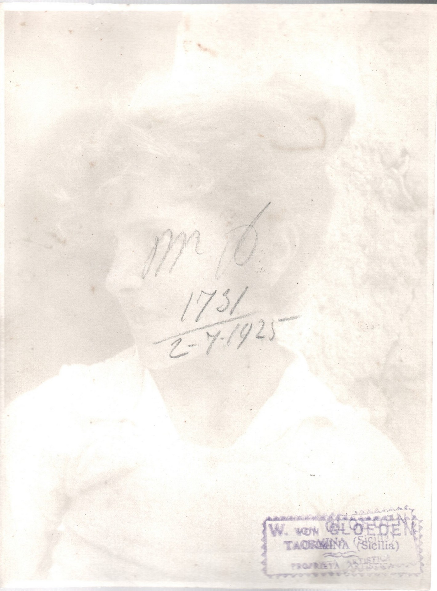 Wilhelm Von Gloeden (Wismar 1856-Taormina 1931) - Volto di giovane donna Cm 16,8x22,5 Fotografia N.1731, timbrata sul retro e data 2.7.1925