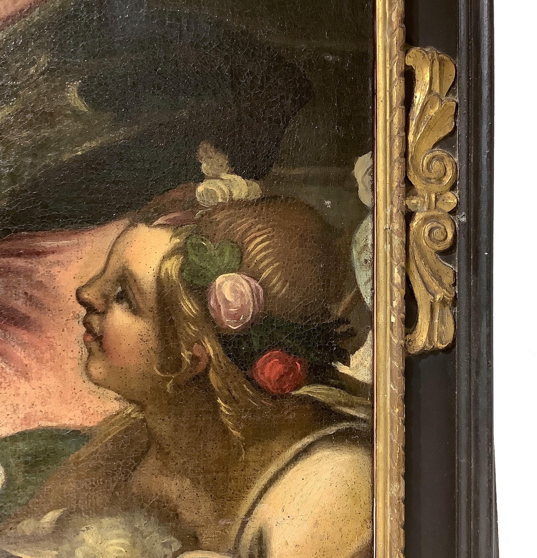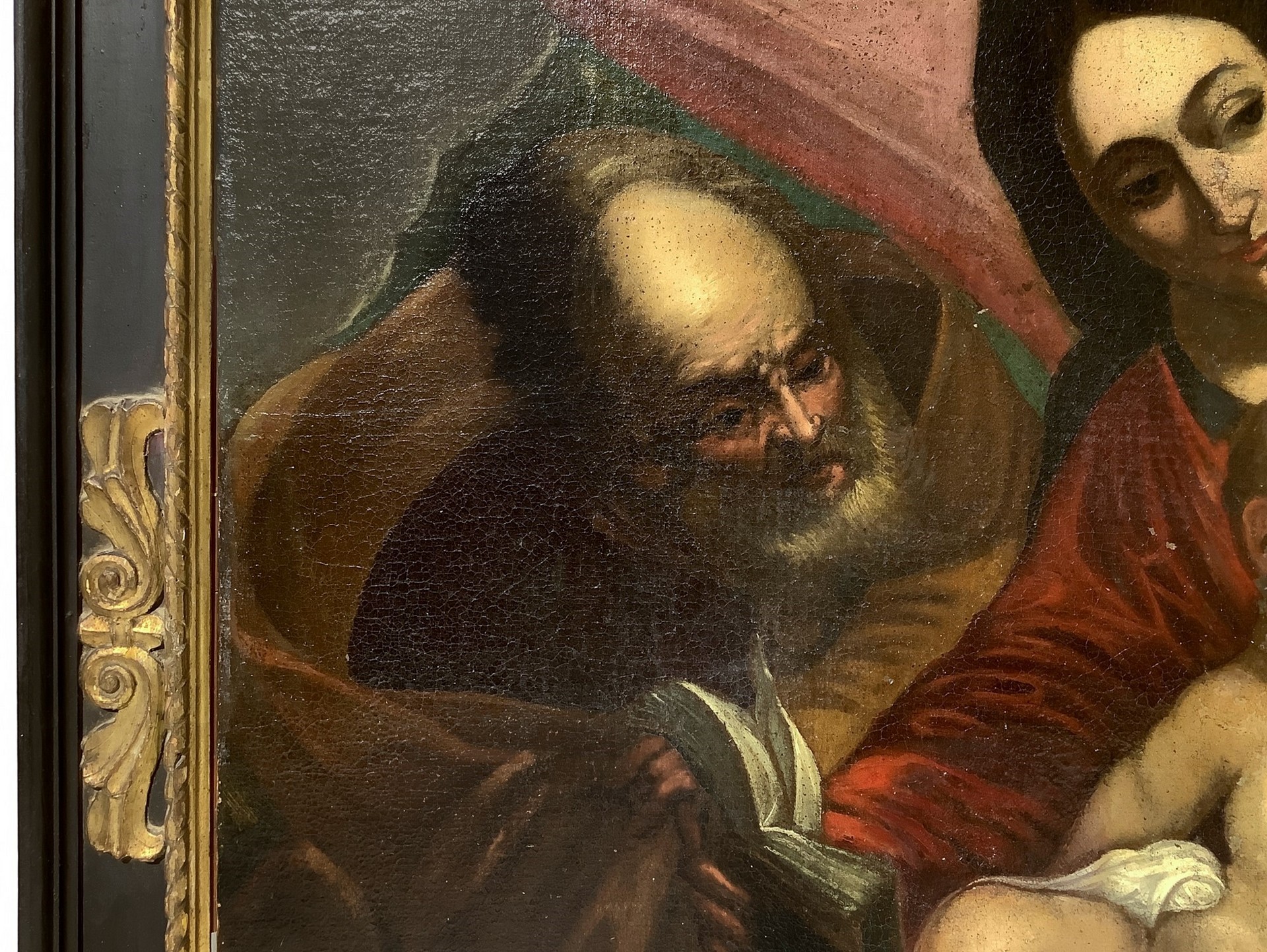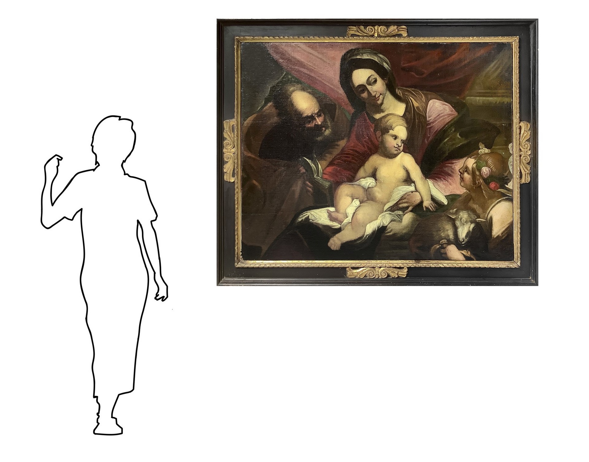 Valerio Castello (copia da) (Genova 12.12.1624-Genova 17.02.1659) - Sacra famiglia con San Giovannino, Late 17° / 18° secolo 96x120, in cornice 117x143 cm Dipinto a olio su tela Copia da Valerio Castello.