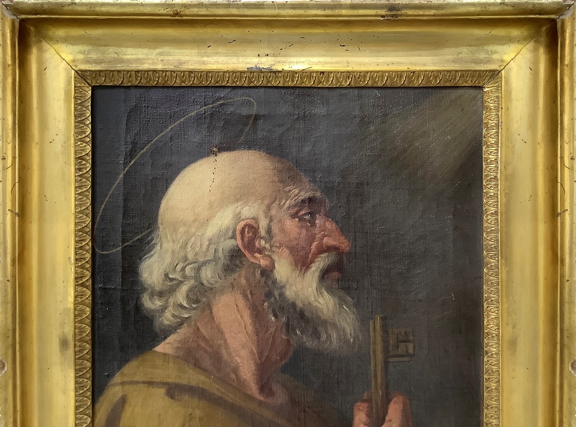 San Pietro, 19° secolo 55x43 cm, 67x54 cm Dipinto a olio su tela Presenti alcuni fori sulla tela.