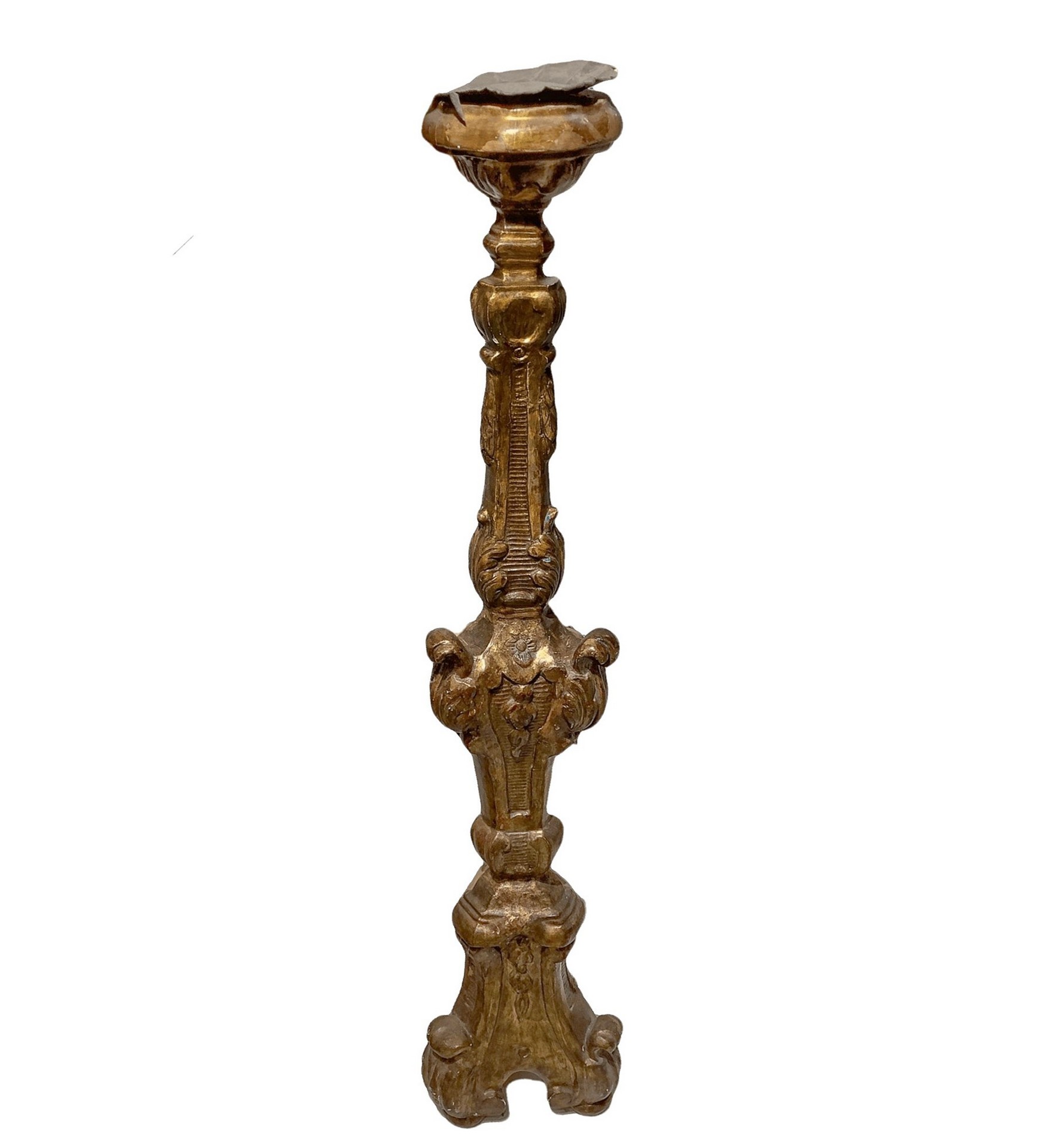 Previous Lot 116 Next Art La Rosa Casa d'Aste - Viale Africa 12, 95129 CATANIA Asta n°35 - Eclettica Asta n°35 - Eclettica Saturday 16 April 2022 hours 16:30 (UTC +01:00) Candeliere in legno dorato, XVIII secolo Candeliere in legno dorato, XVIII secolo H Cm 140