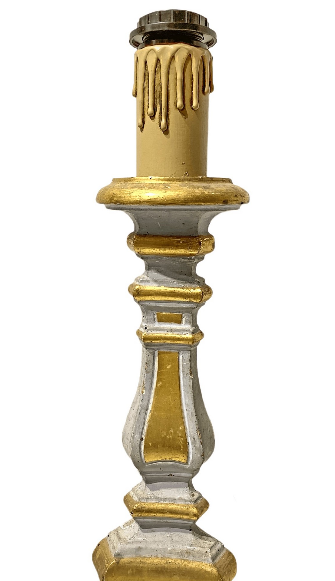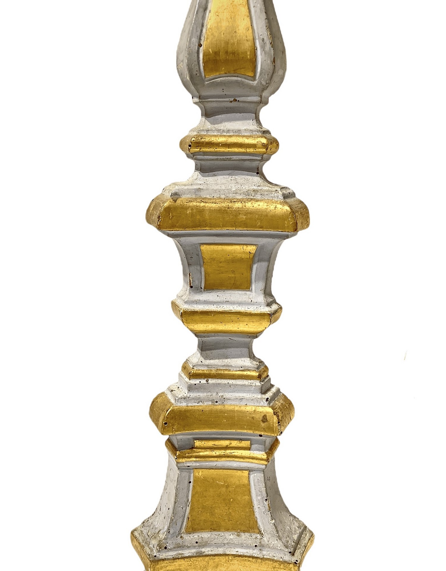 Candeliere in legno dorato e laccato., Late 18° secolo. H cm 60