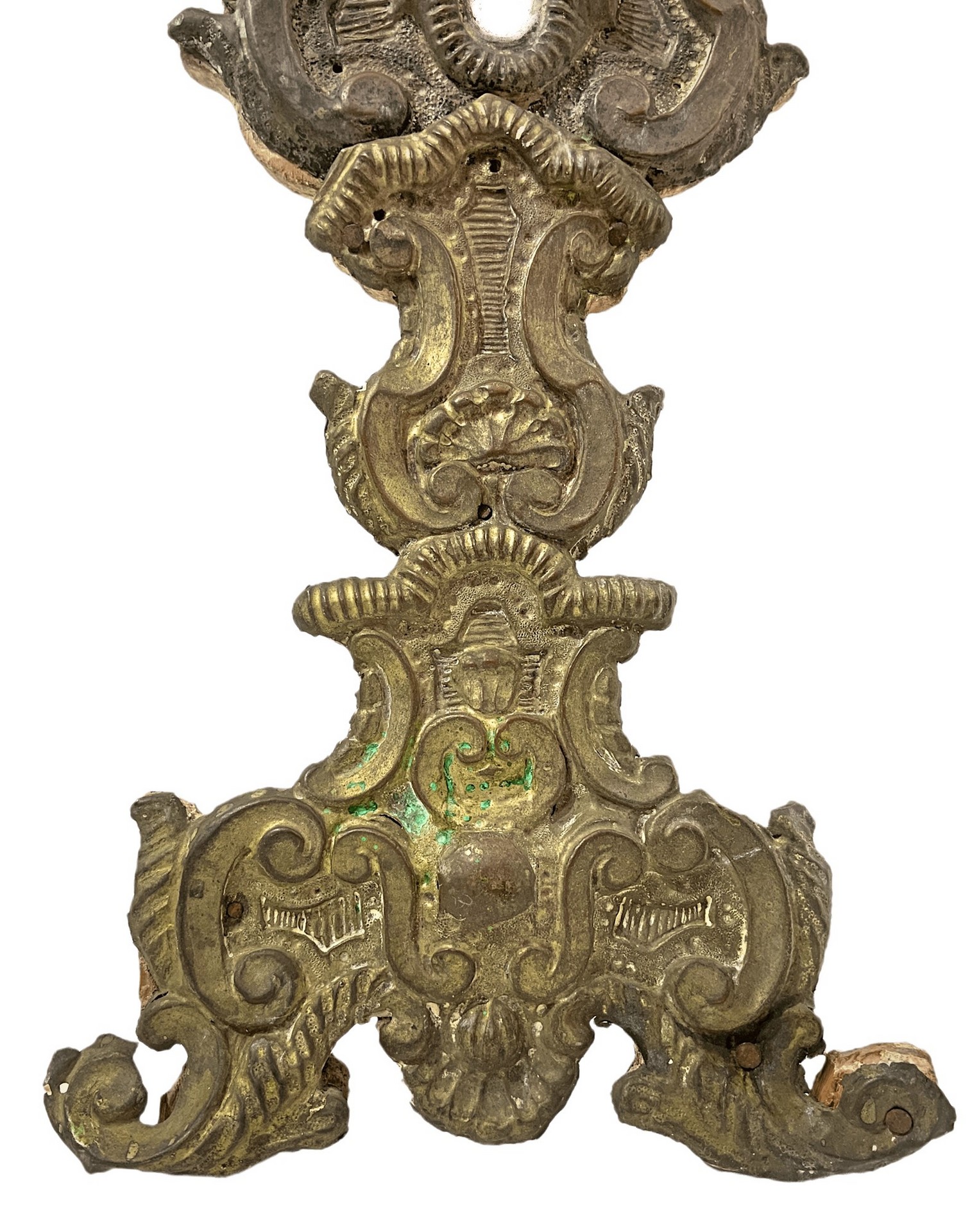 Ostensorio in legno, ricoperto in ottone sbalzato a rilievo, 19° secolo H 44 cm