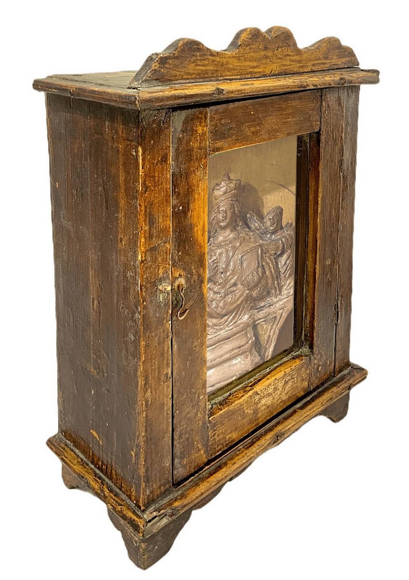 Teca lignea contenente scultura di S.Agata in terracotta, 19° secolo Teca H Cm 34x24, scultura H cm 18x14