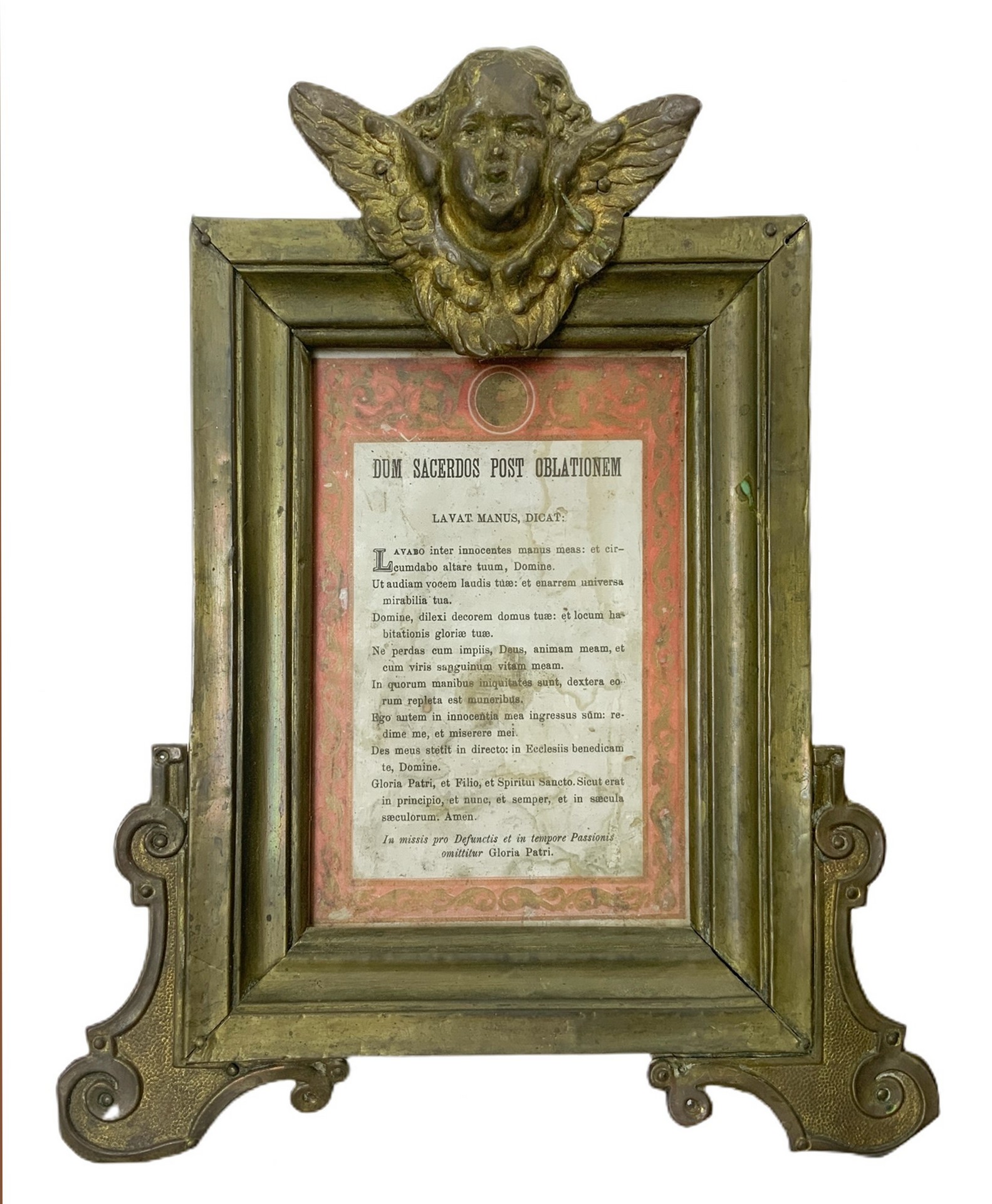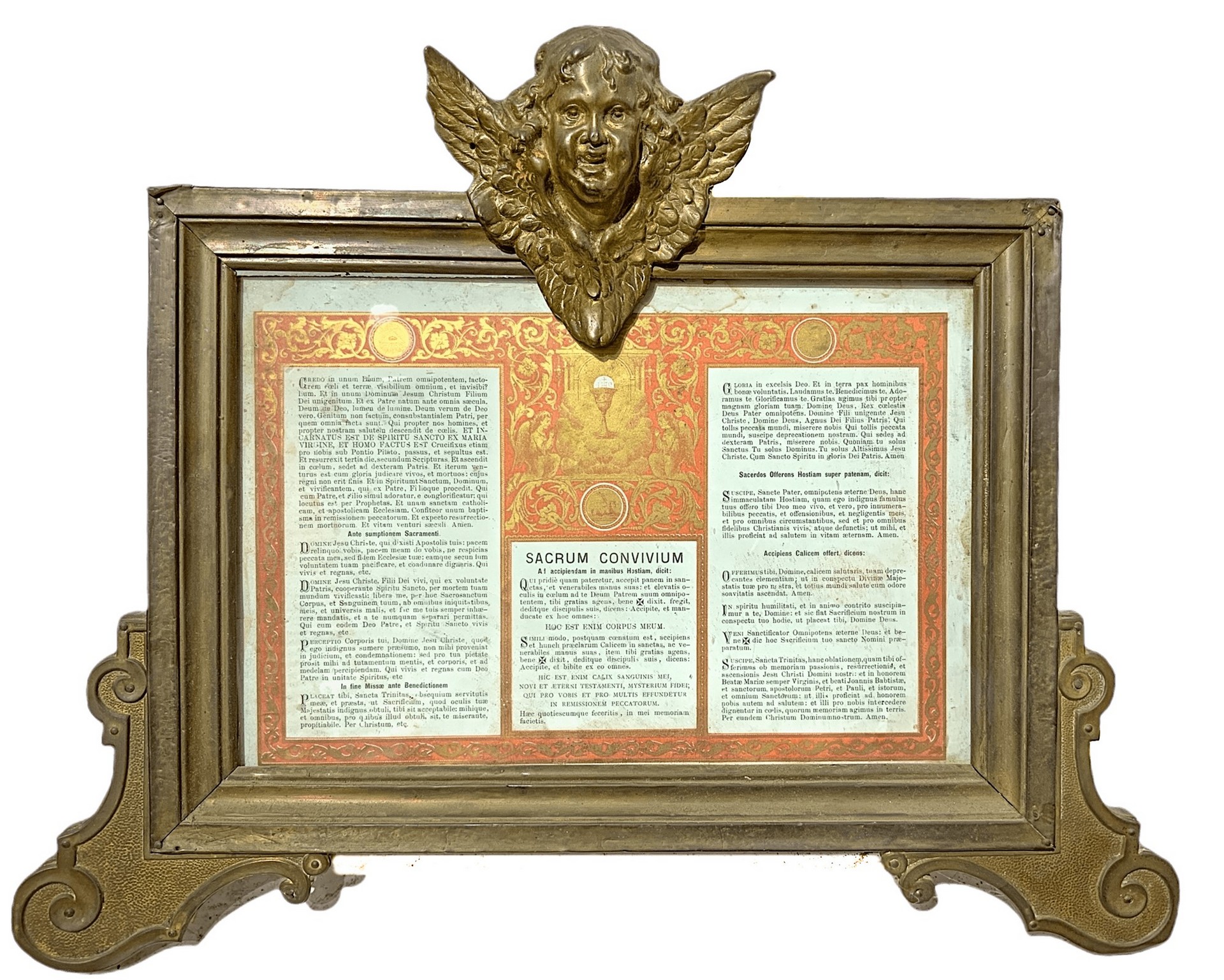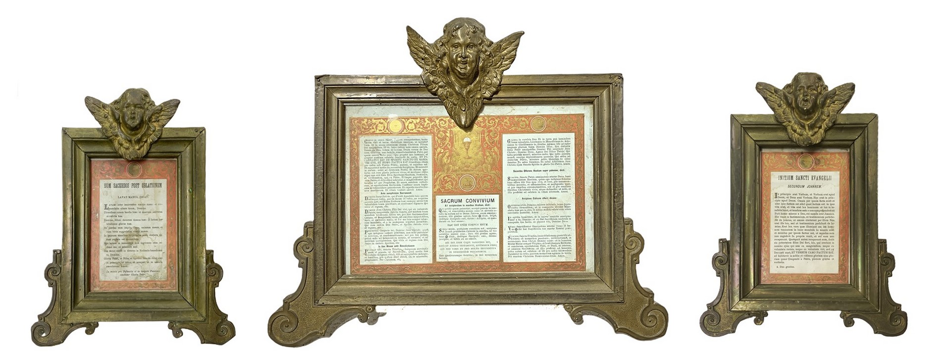 Lot 127 | Trittico di cartaglorie in legno ricoperto da ottone con zefiri alati alla sommità, 20° secolo