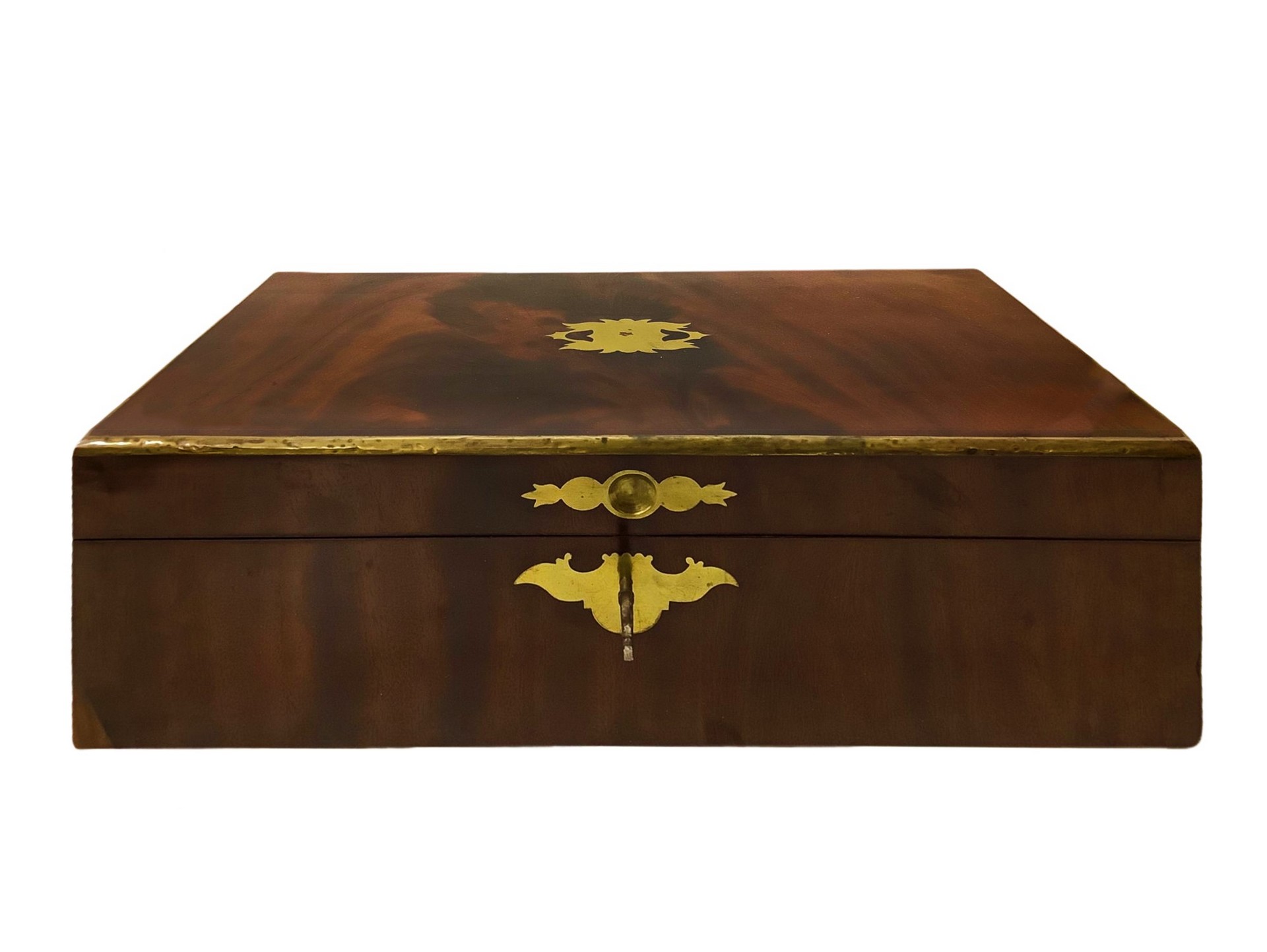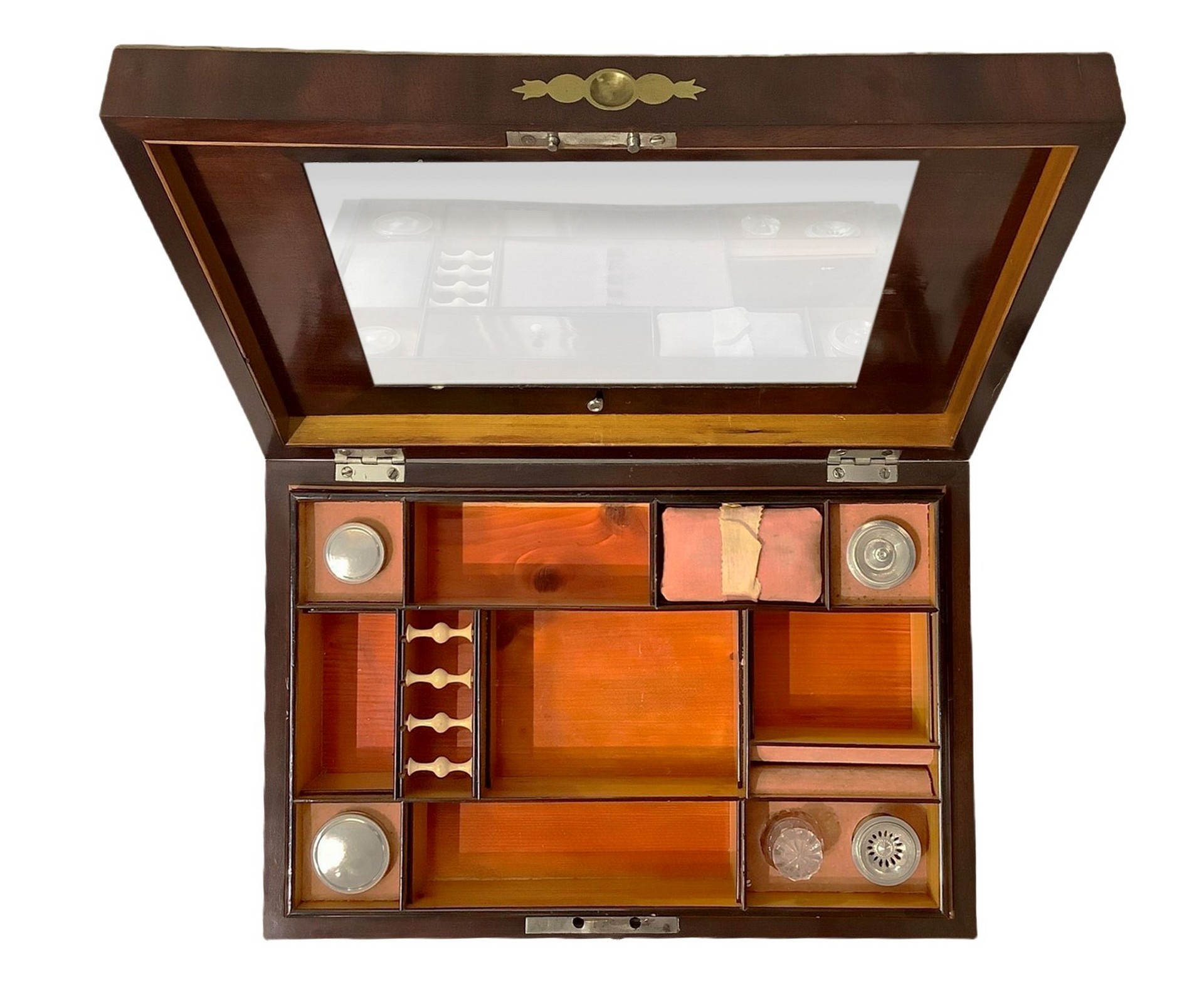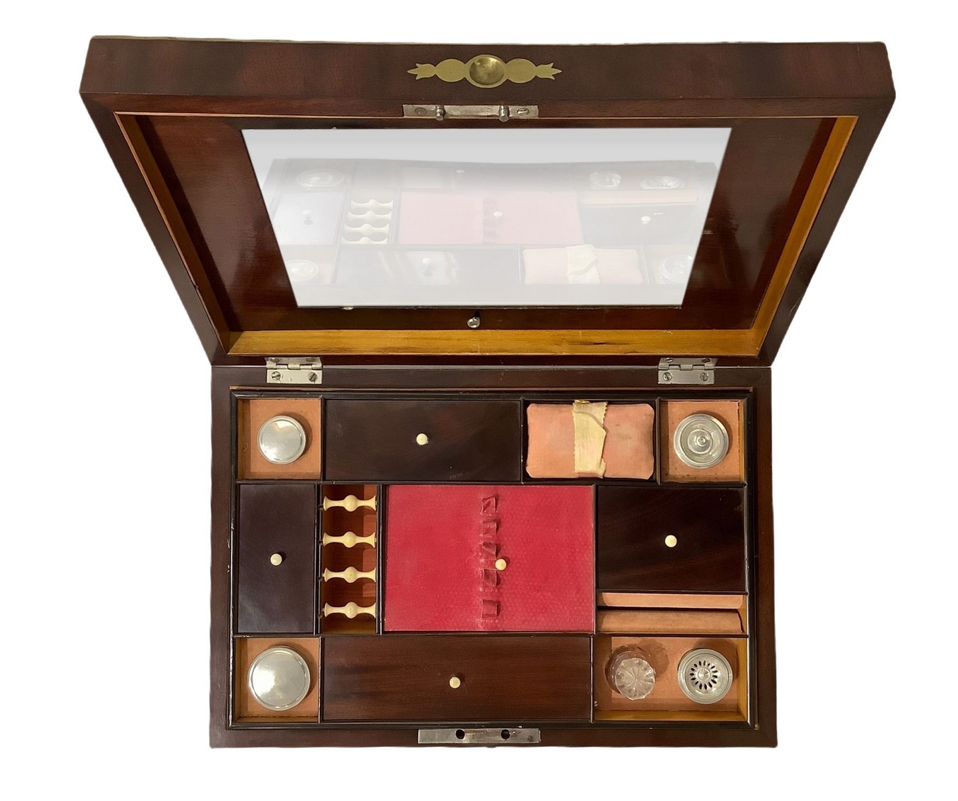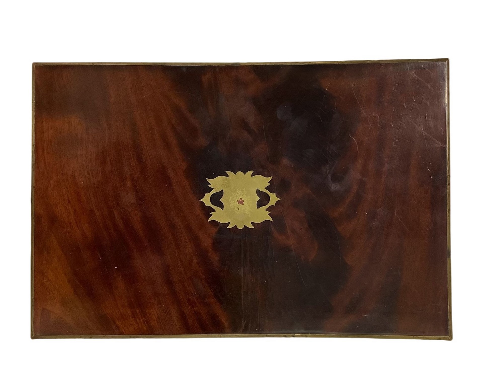 Scatola da lavoro per cucito h 12 cm 39x26 cm In piuma di mogano con intarsi in ottone.