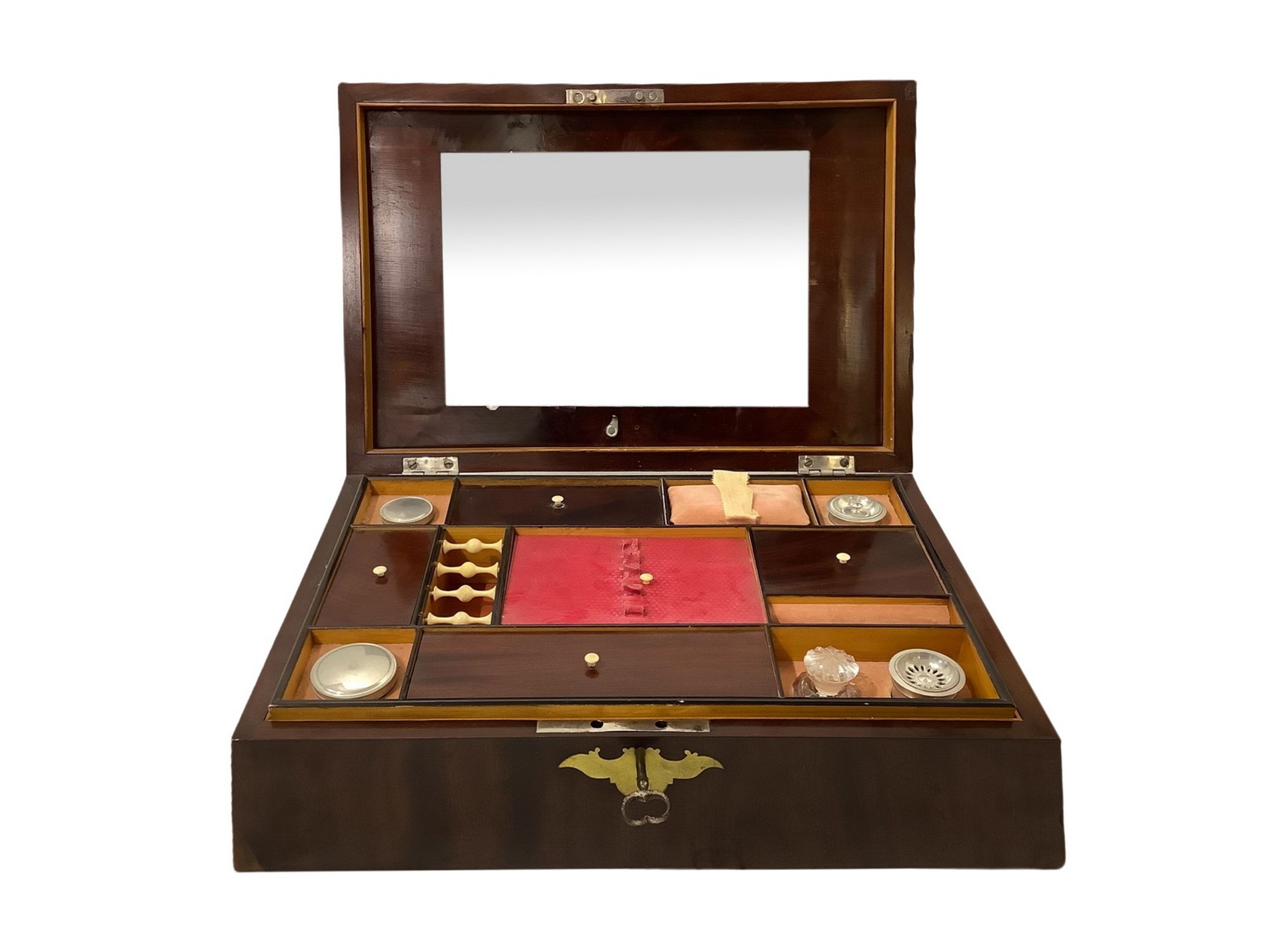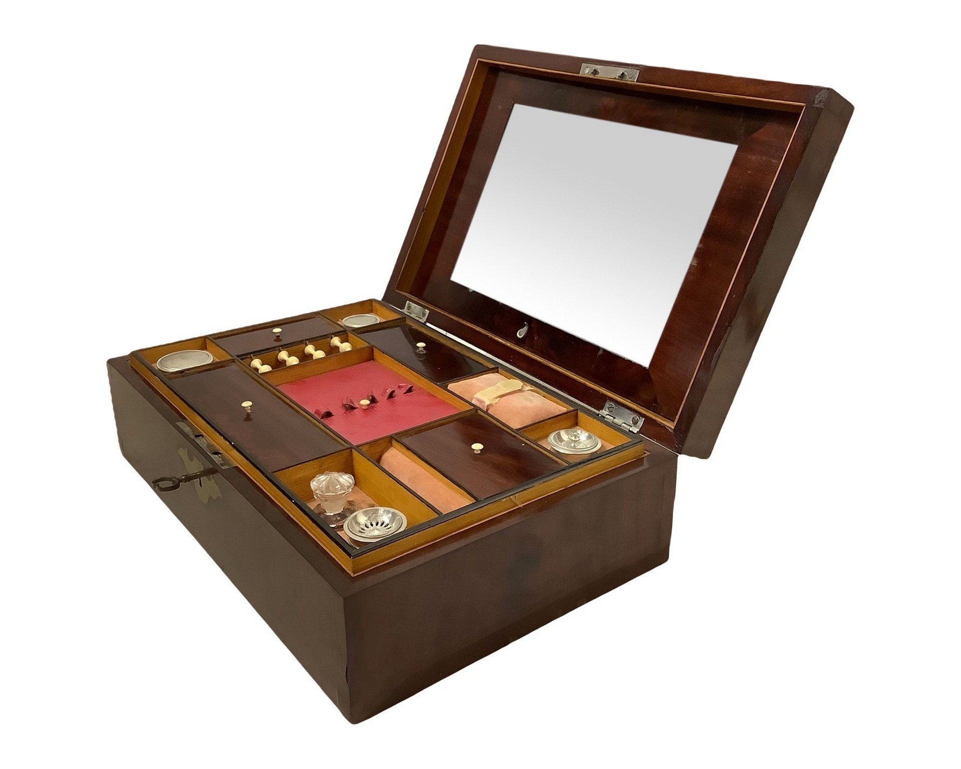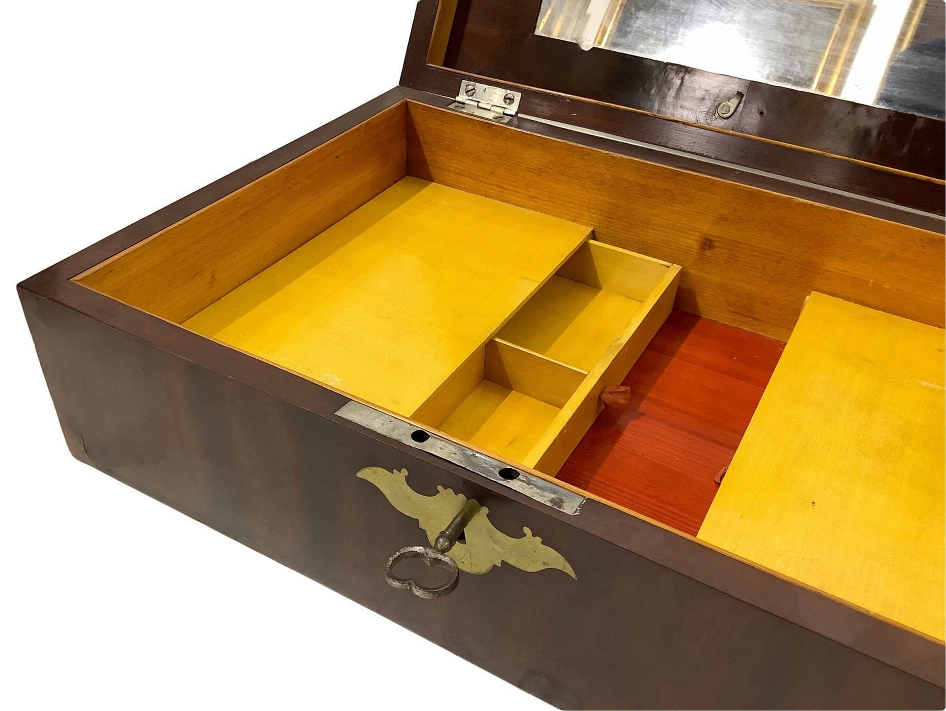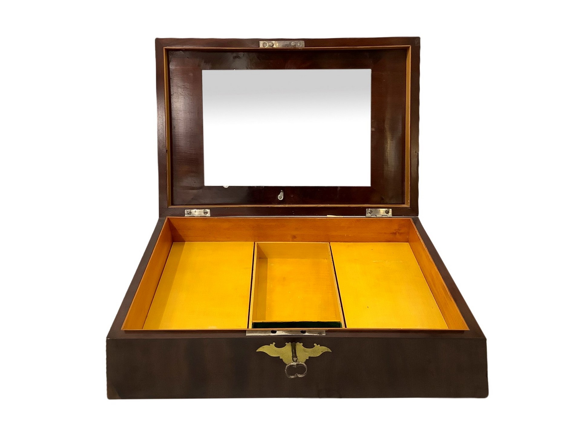 Scatola da lavoro per cucito h 12 cm 39x26 cm In piuma di mogano con intarsi in ottone.