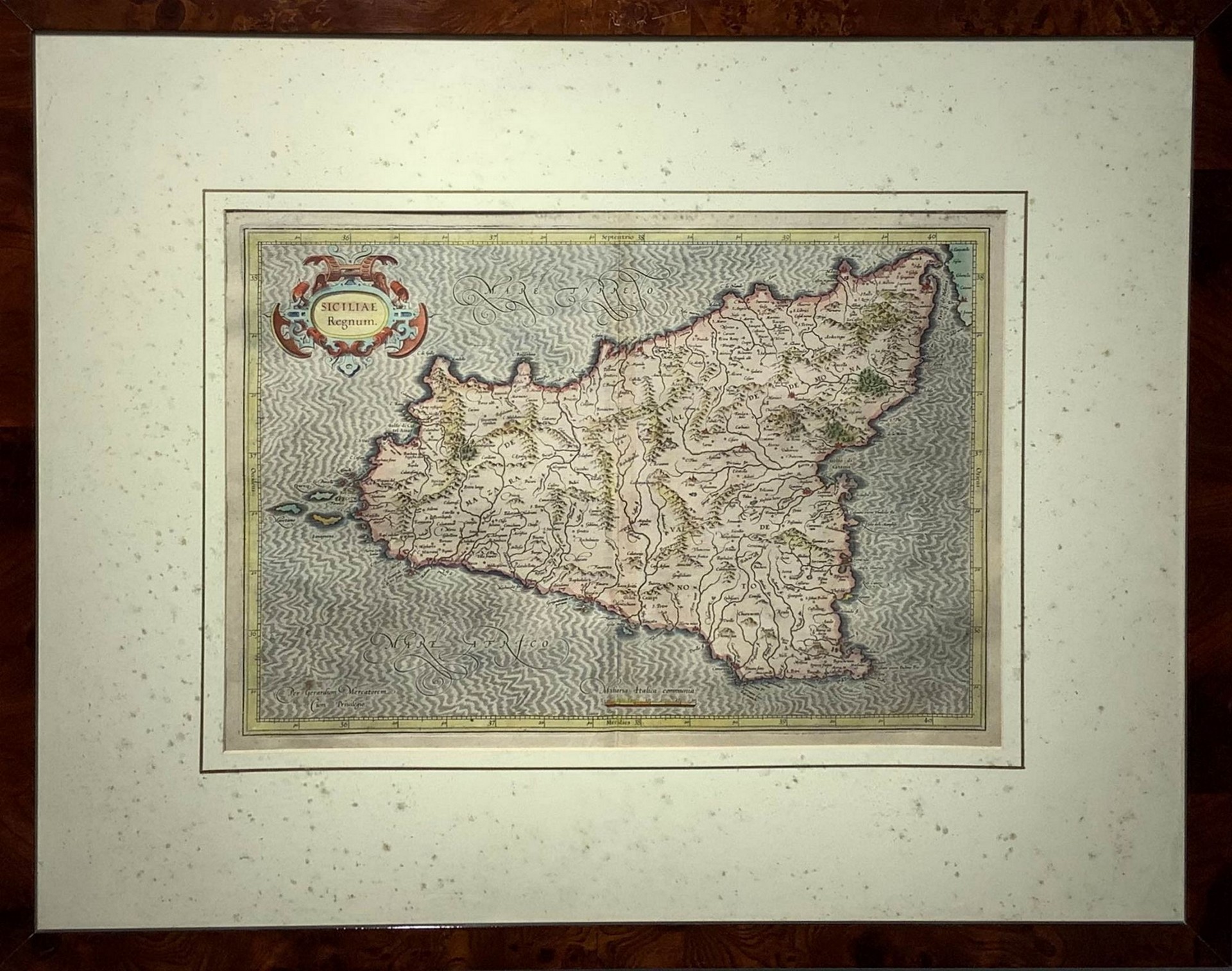 Gerhard Kremer (Rupelmonde 1512-Duisburg 1594) - Sicilia Regnum, carta geografica, 1589 33,8 x 47,8 cm Incisione, acquaforte e bulima Ottime condizioni