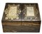 Cassetta porta documenti a due ante in legno di ebano violetto h 23cm, 31x20 cm Con applicazioni di scene in madreparla con raffigurazioni a basso rilievo di scene bibliche incorniciate in ottone riccamente bulinato