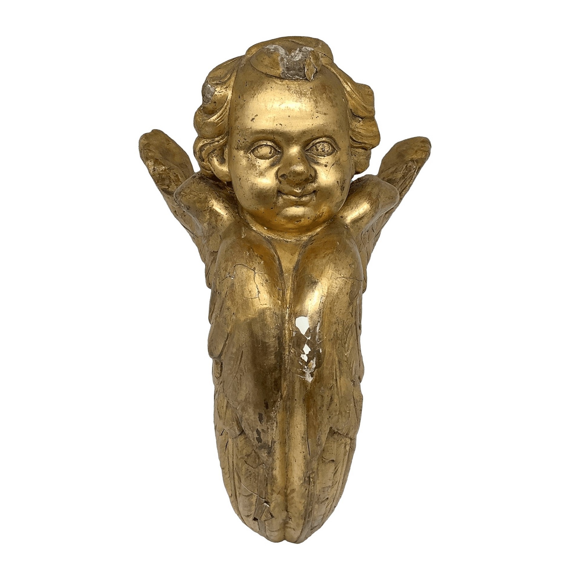 Coppia di angeli alati di provenienza siciliana, late eighteen° secolo H cm 29, profondità cm 21 Legno gessato e dorato a foglia