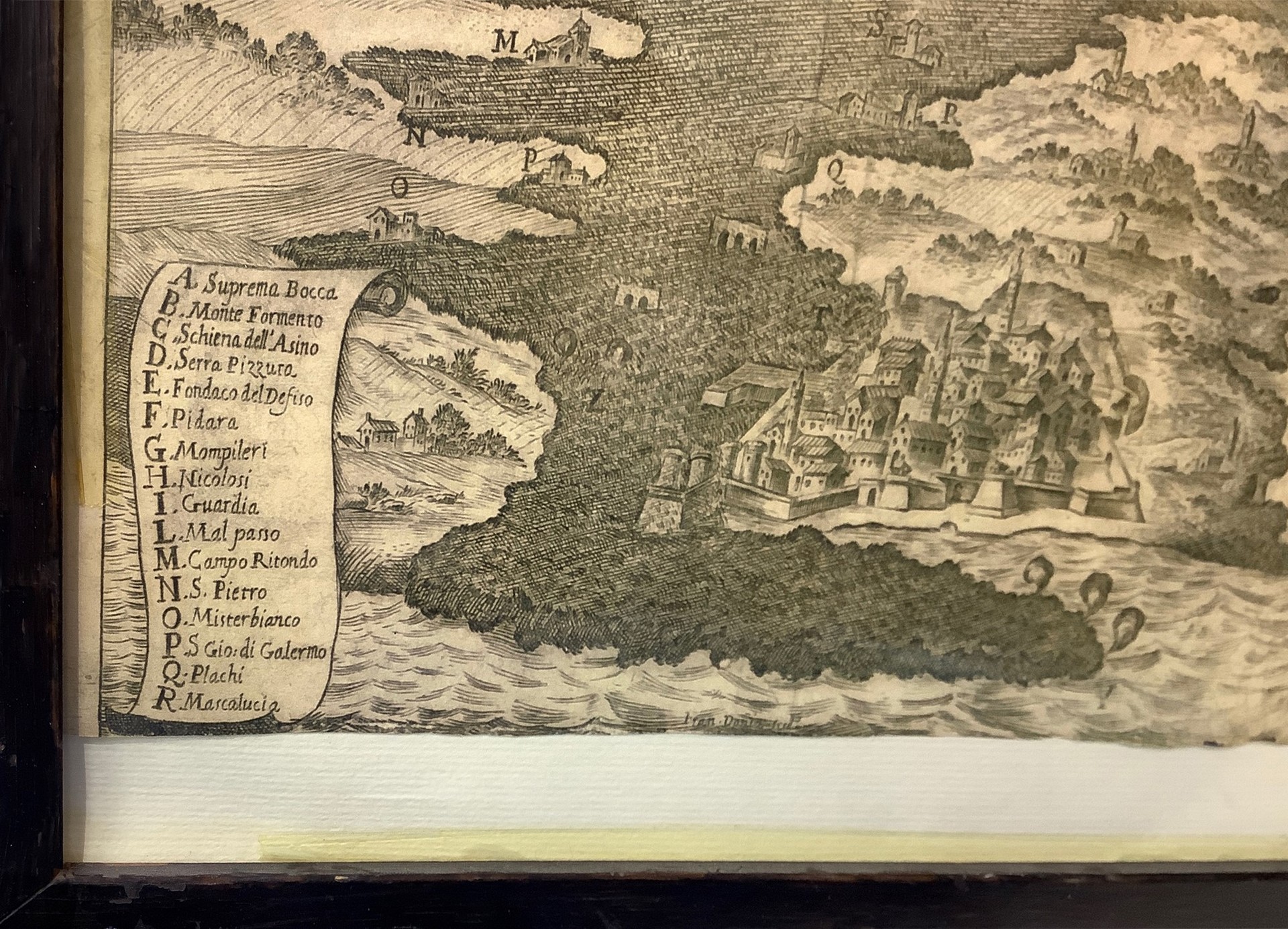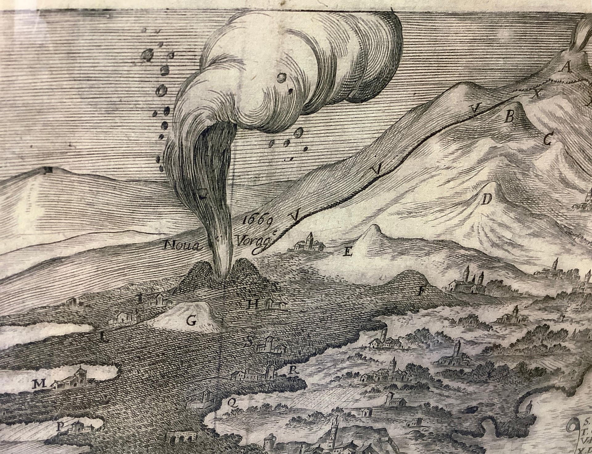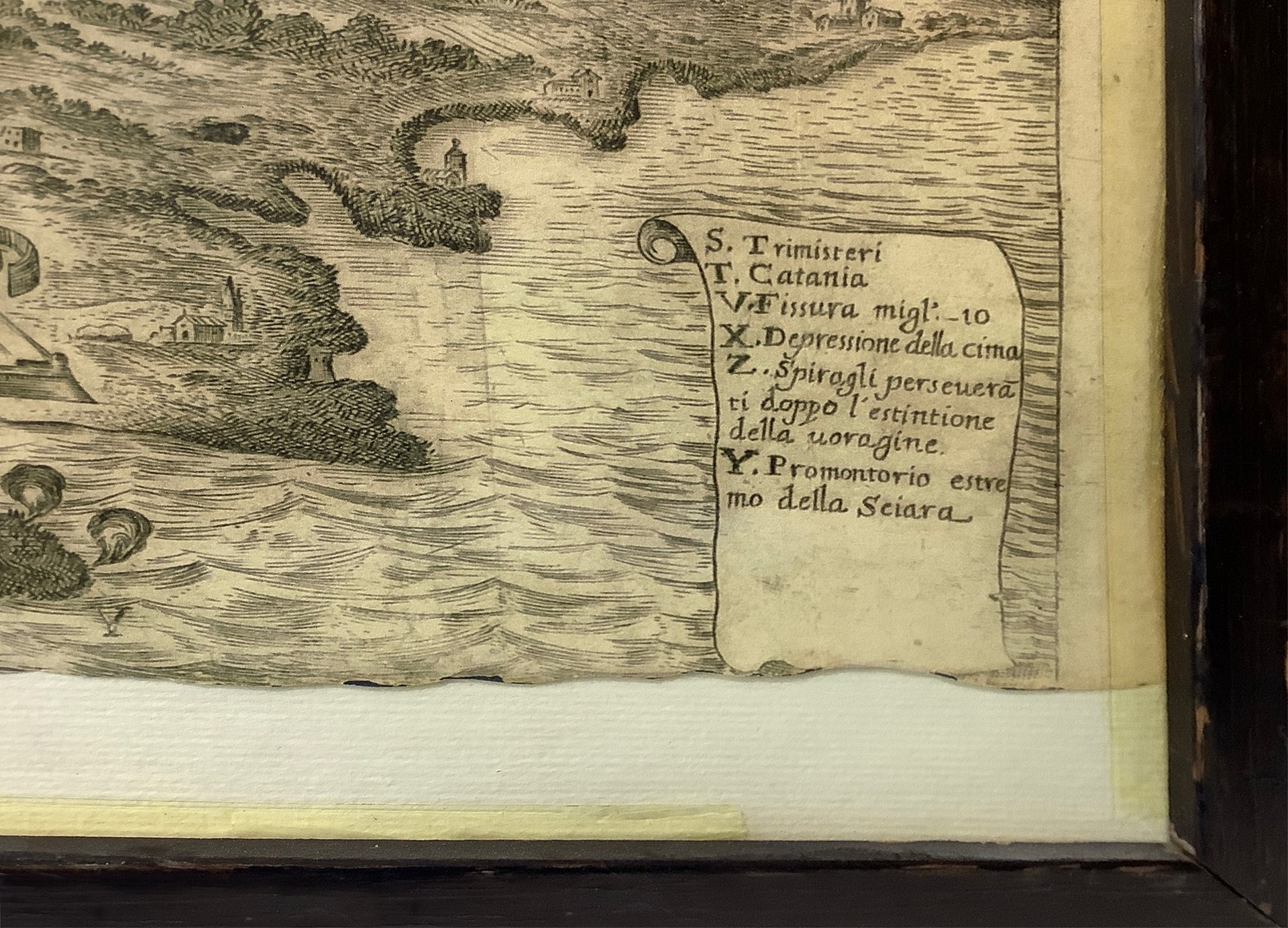 Etna con Catania e legenda dei paesi etnei, XX° secolo 24x30 cm
