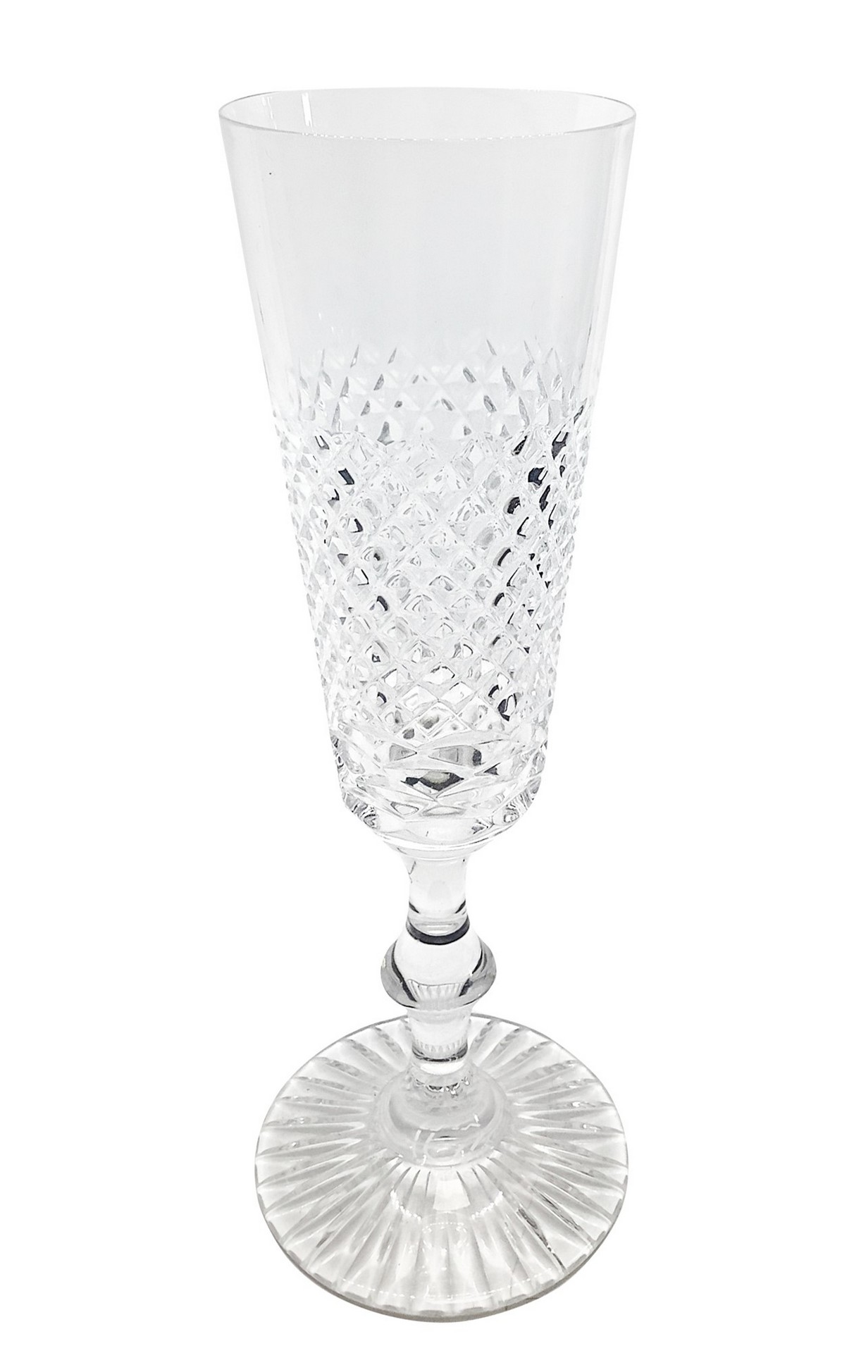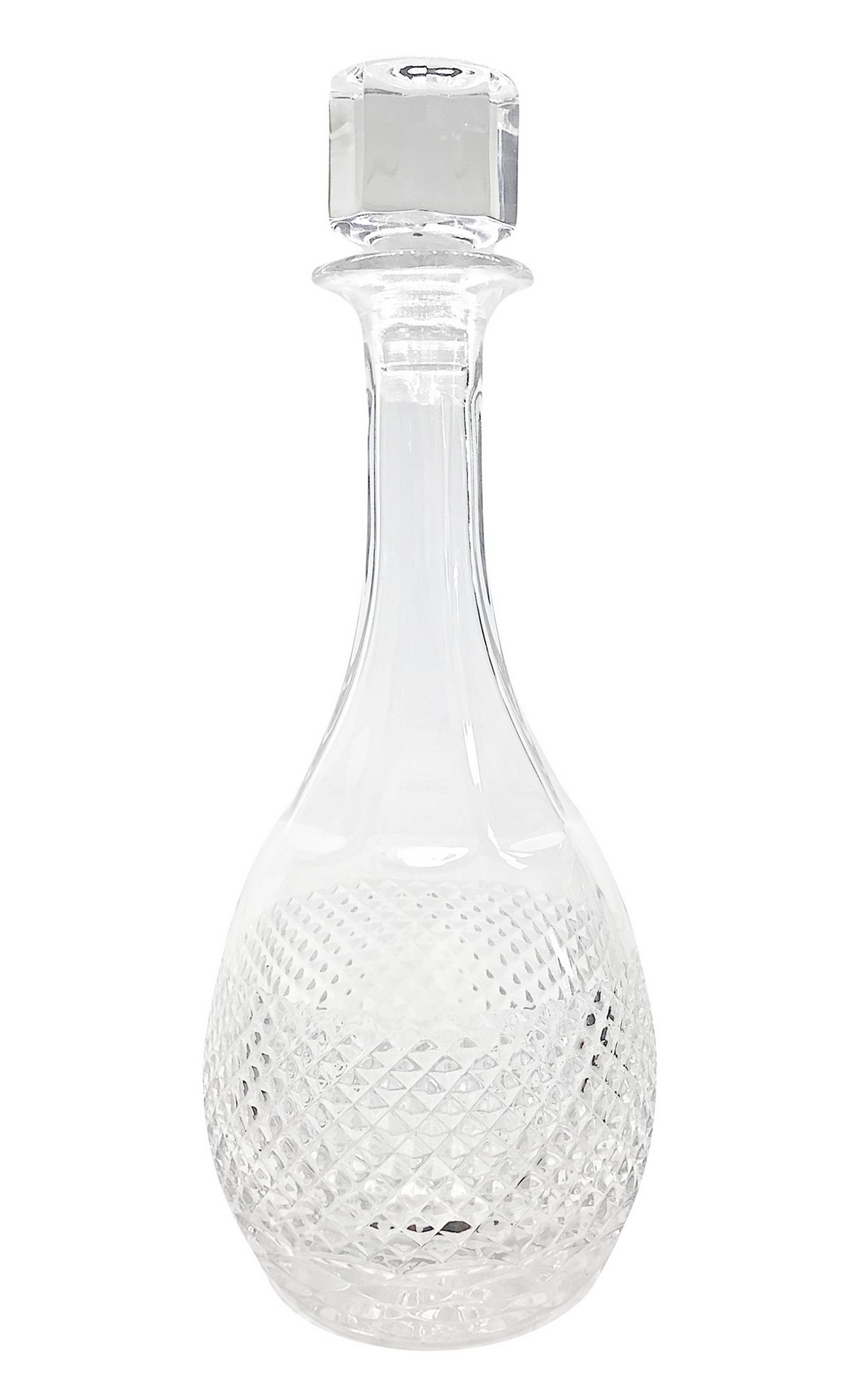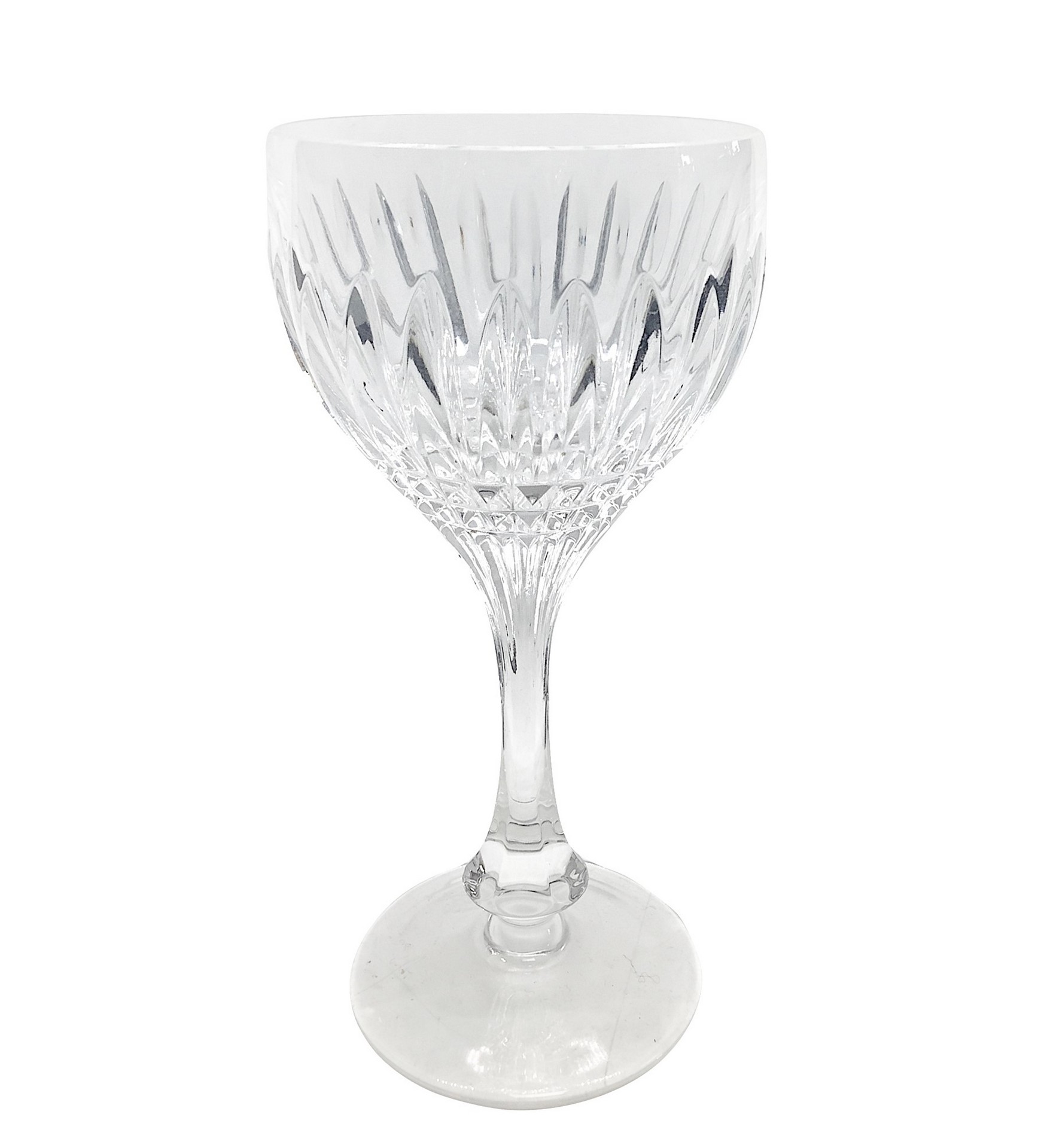 Servizio di bicchieri di cristallo, Cristalleria Persichino, servizio “Ascot”, composto da: 12 bicchieri vino, 12 bicchieri acqua, 12 bicchieri champagne, 12 bicchieri whisky, 6 bicchieri cognac, 1 bottiglia, 1 brocca.