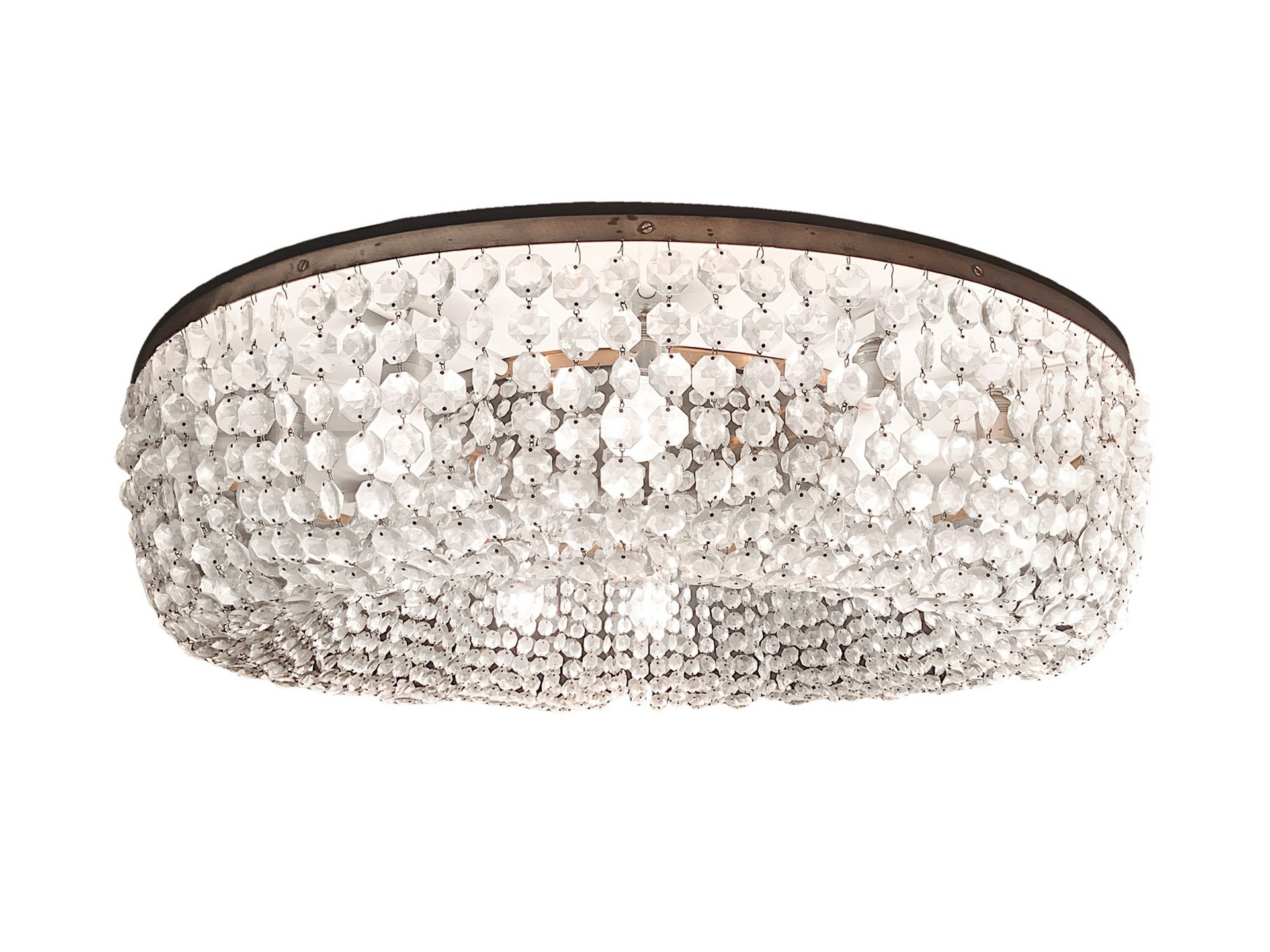 Coppia di importanti plafoniere da soffitto in ottone e brindoli a rosetta.
