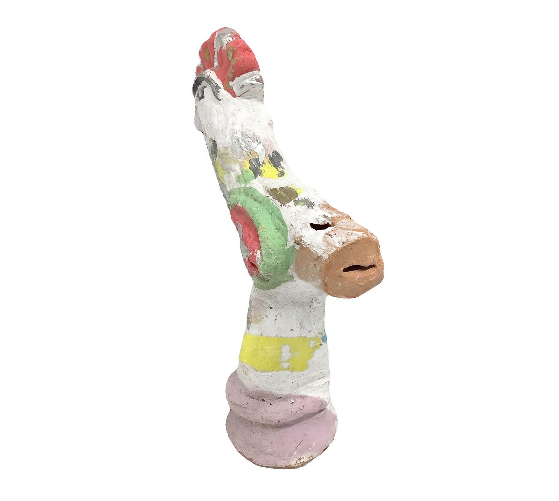 Salvatore Leone - FISCHIETTO POLICROMO IN CERAMICA DI CALTAGIRONE RAFFIGURANTE UN GALLETTO h 13 cm. Salvatore Leone "U Nnacchiareddu" nacque a Caltagirone il 13 Aprile del 1912. Frequentò solo la prima elementare e iniziò a lavorare sin da piccolo come muratore per poi appassionarsi alla lavorazione dell’argilla a partire dai 18 anni presso la bottega dello stovigliaio Mastro Nino Abela. Qui iniziò a realizzare fischietti e personaggi del presepe rispettando severamente la tradizione. Egli prelevava l’argilla dalla contrada San Giorgio, nei dintorni della sua città e inizialmente la lavorava a mano per poi riporla all’interno dei calchi preventivamente cosparsi di calce in polvere per non far aderire l’argilla ai calchi. Infine capovolge delicatamente il calco cosi da far fuoriuscire la figurina che va ritoccata con stecchi di legno e ferro. In questa fase viene attaccato il fischio dalla misura di 2-3 cm con una piccola quantità d’argilla. Dopo aver lasciato asciugare per qualche giorno i fischietti, procedeva con la cottura in una piccola fornace e successivamente le immergeva nel latte di calce e infine li dipingeva. Le sue figure sono realizzate in maniera grossolana e con molta fantasia utilizzando colori puri per attirare l’interesse dei bambini, a cui i fischietti erano destinati. Salvatore Leone "U Nnacchiareddu" nacque a Caltagirone il 13 Aprile del 1912. Frequentò solo la prima elementare e iniziò a lavorare sin da piccolo come muratore per poi appassionarsi alla lavorazione dell’argilla a partire dai 18 anni presso la bottega dello stovigliaio Mastro Nino Abela. Qui iniziò a realizzare fischietti e personaggi del presepe rispettando severamente la tradizione. Egli prelevava l’argilla dalla contrada San Giorgio, nei dintorni della sua città e inizialmente la lavorava a mano per poi riporla all’interno dei calchi preventivamente cosparsi di calce in polvere per non far aderire l’argilla ai calchi. Infine capovolge delicatamente il calco cosi da far fuoriuscire la figurina che va ritoccata con stecchi di legno e ferro. In questa fase viene attaccato il fischio dalla misura di 2-3 cm con una piccola quantità d’argilla. Dopo aver lasciato asciugare per qualche giorno i fischietti, procedeva con la cottura in una piccola fornace e successivamente le immergeva nel latte di calce e infine li dipingeva. Le sue figure sono realizzate in maniera grossolana e con molta fantasia utilizzando colori puri per attirare l’interesse dei bambini, a cui i fischietti erano destinati.