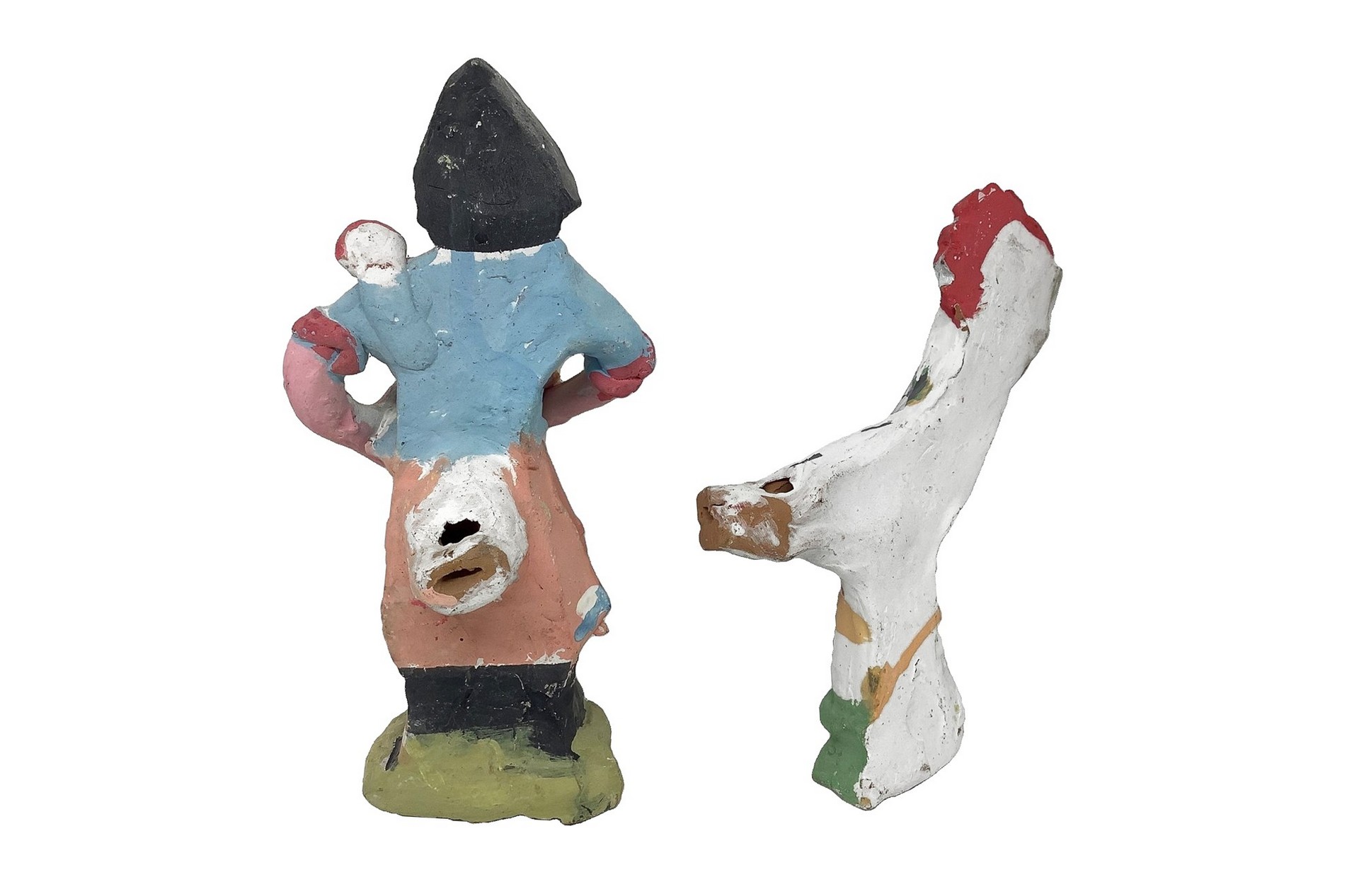 Salvatore Leone - Coppia di fischietti policromi in ceramica di Caltagirone di un contadino e di un galletto