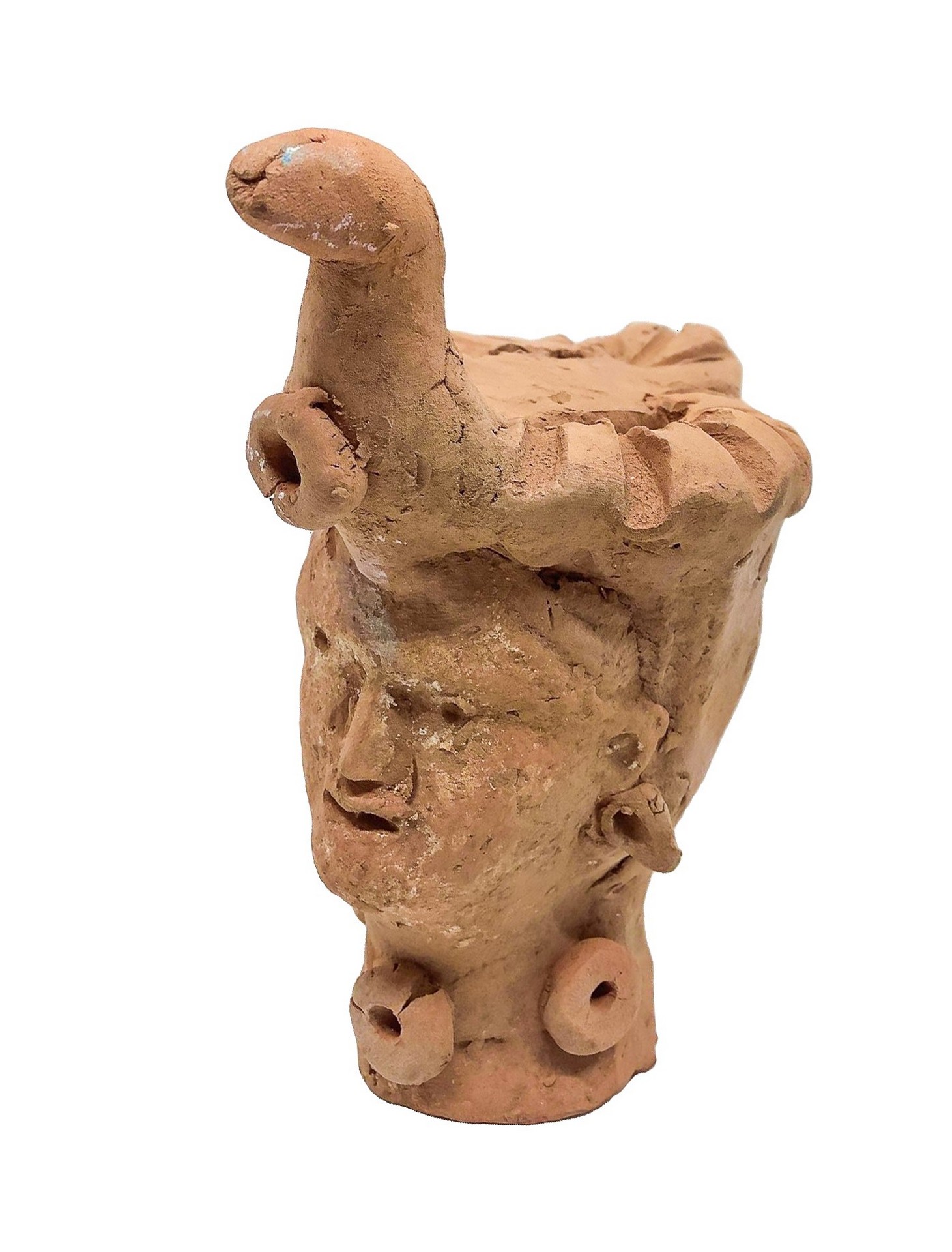 Salvatore Leone - Fischietto raffigurante figura antropomorfa in monocromo e in ceramica di Caltagirone
