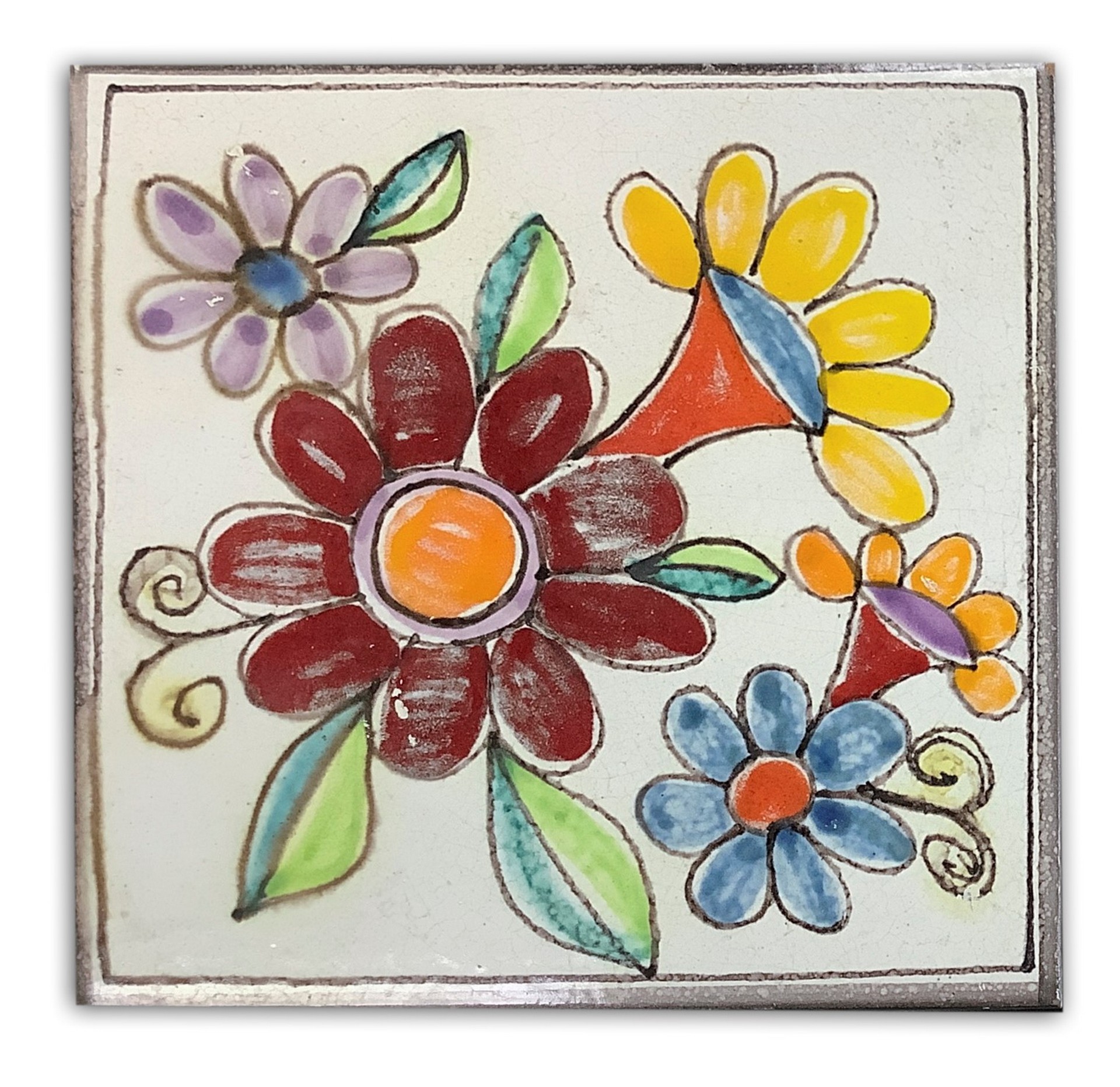 De Simone - Coppia di piastrelle in maiolica raffiguranti fiori variopinti, 60's 20x20 cm