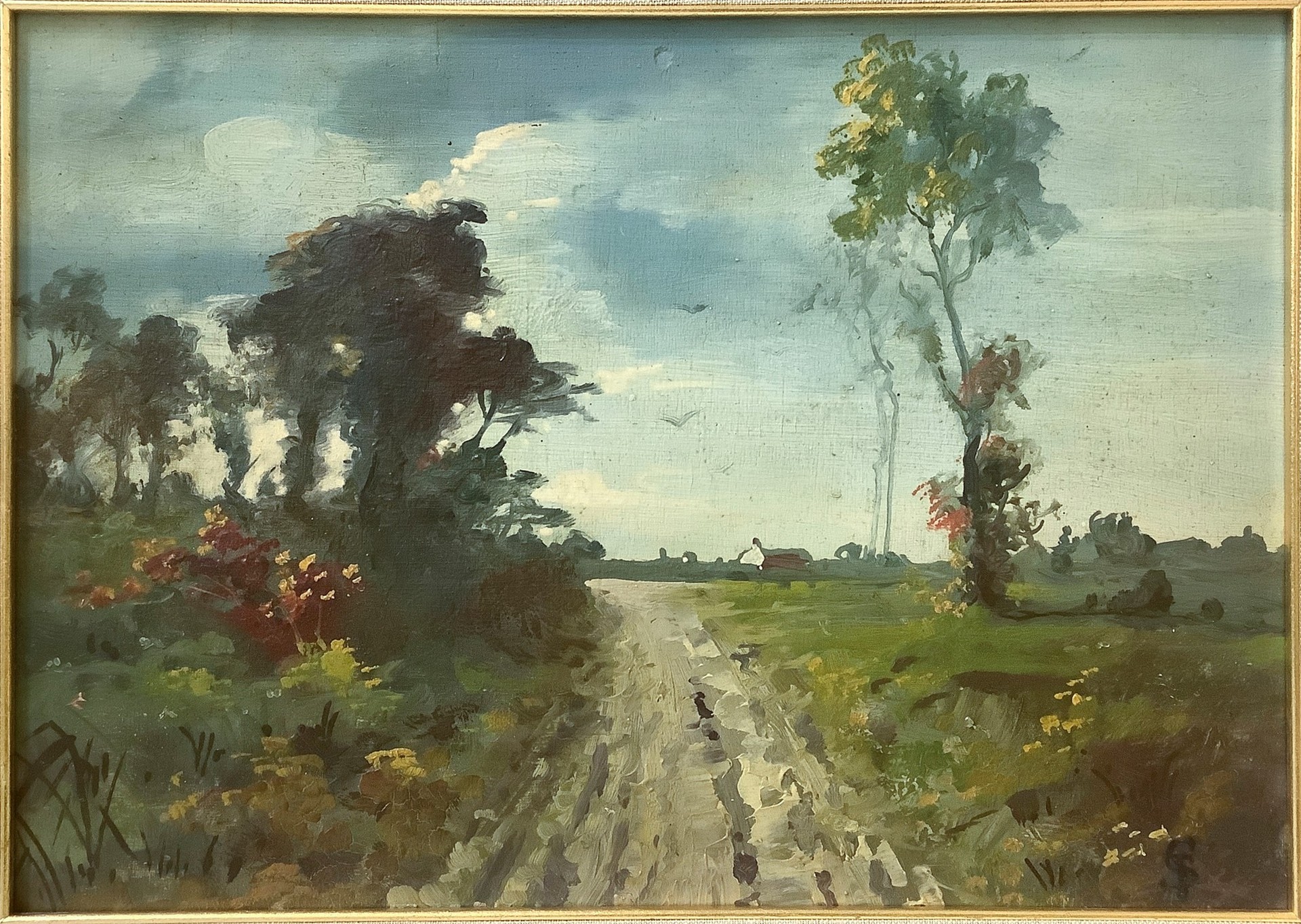 Telemaco Signorini (Italian 1835-1901) - Paesaggio Toscano cm 26x36, in cornice cm 39x49 Dipinto ad olio su tavola
