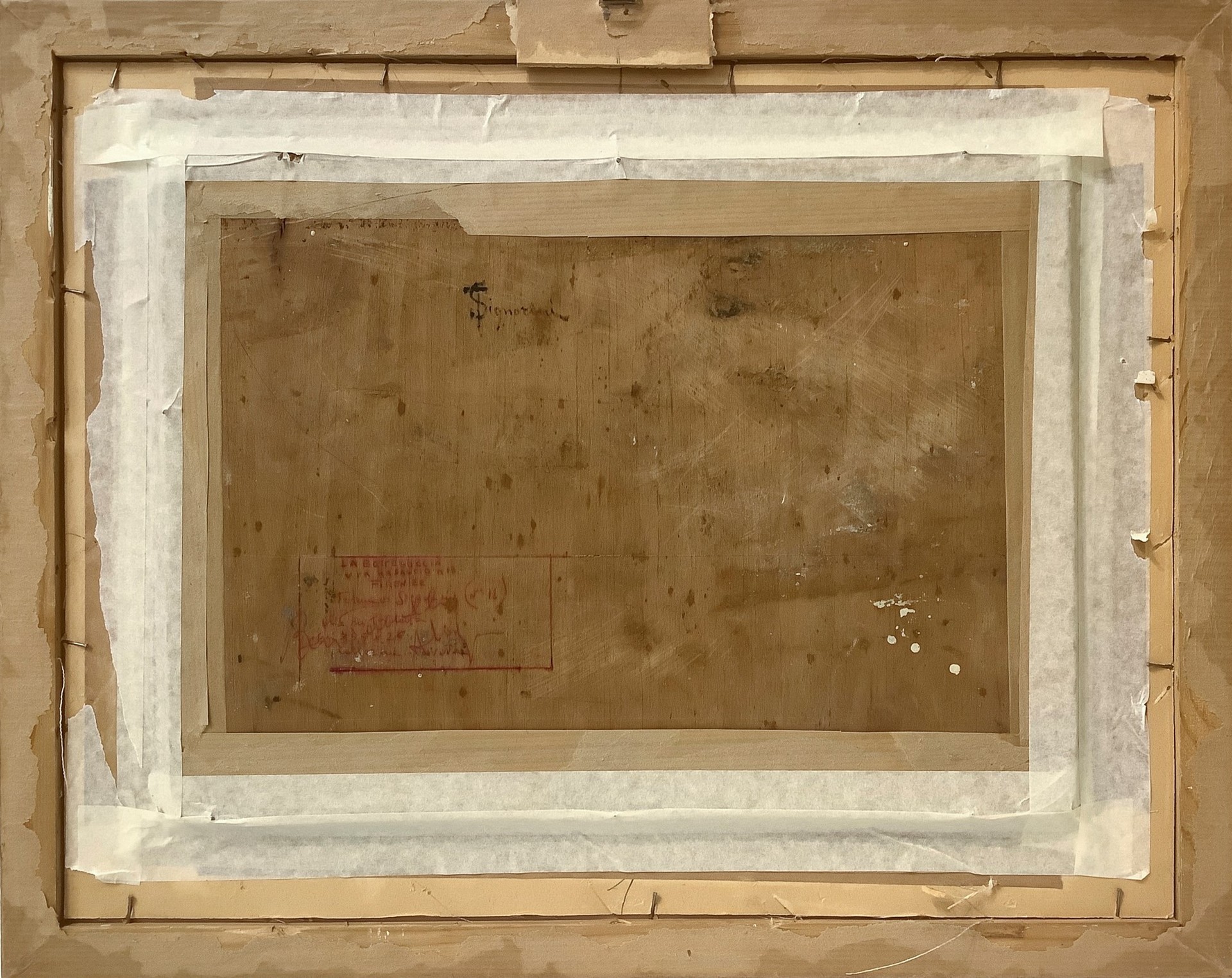 Firmato in basso a destra con monogramma e sul retro per esteso. Timbro Galleria "La Botteguccia " Firenze