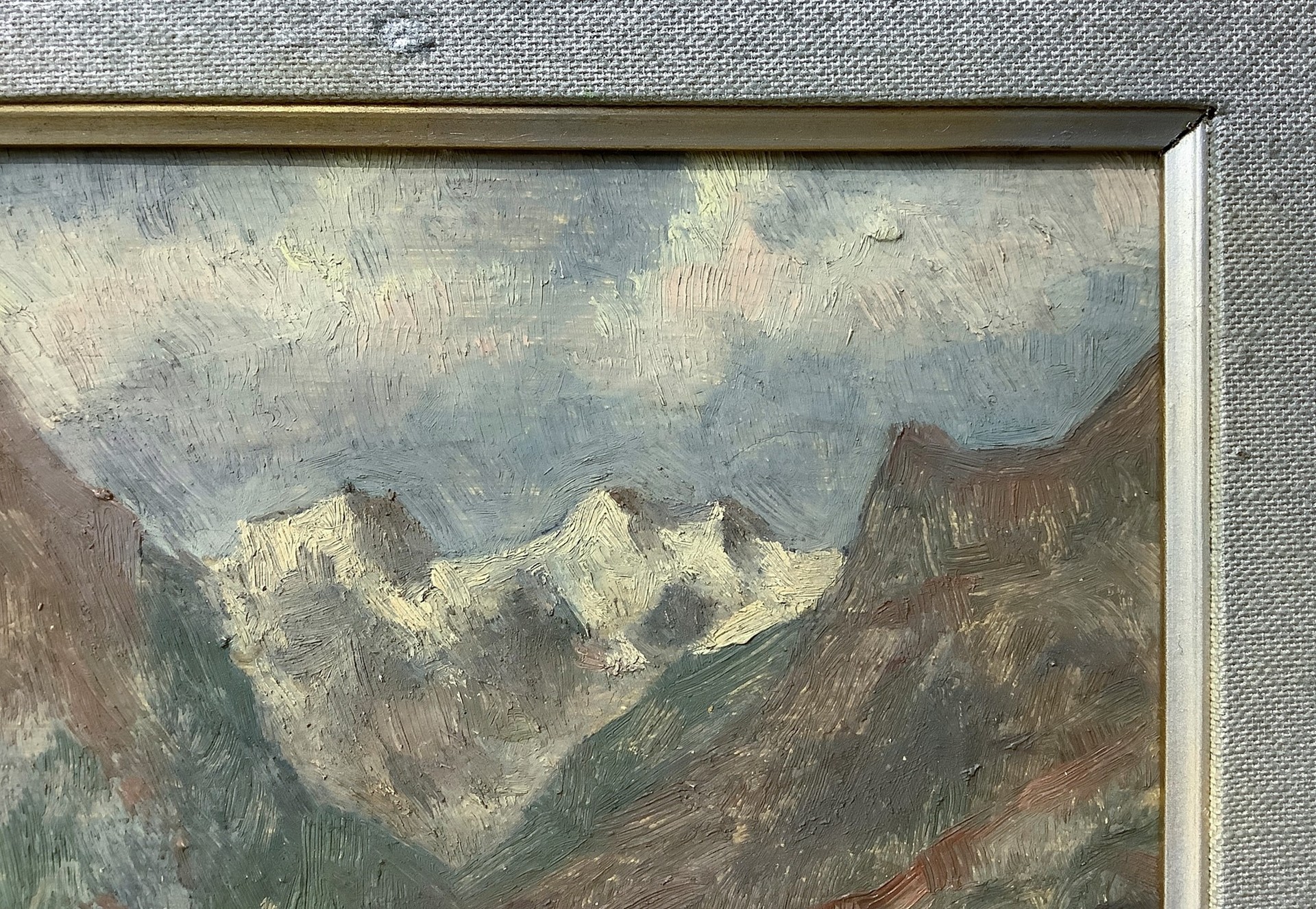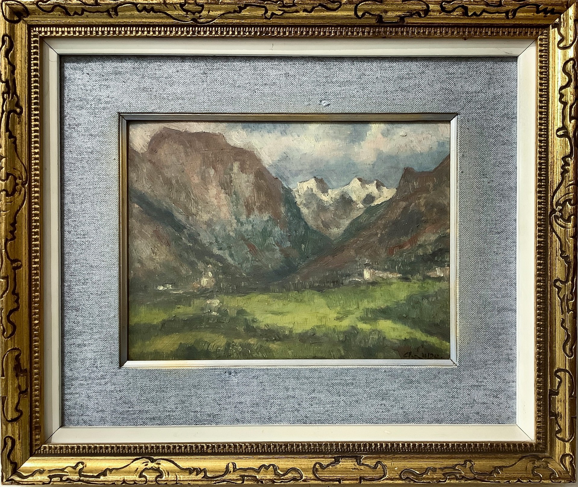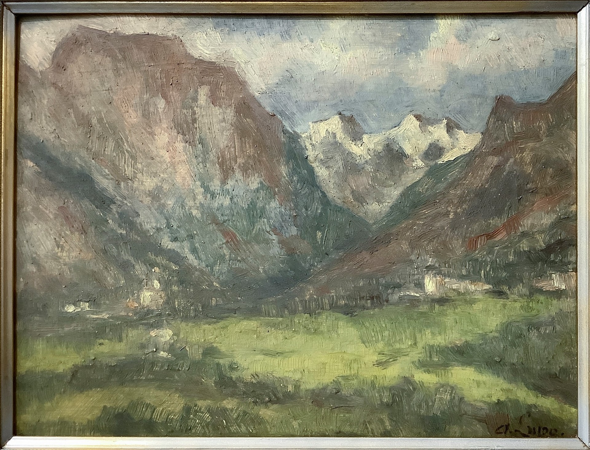 Alessandro Lupo (1876-Torino 1953) - Paesaggio montano 19,5x25 cm, in cornice 33x39 cm Dipinto a olio su cartoncino