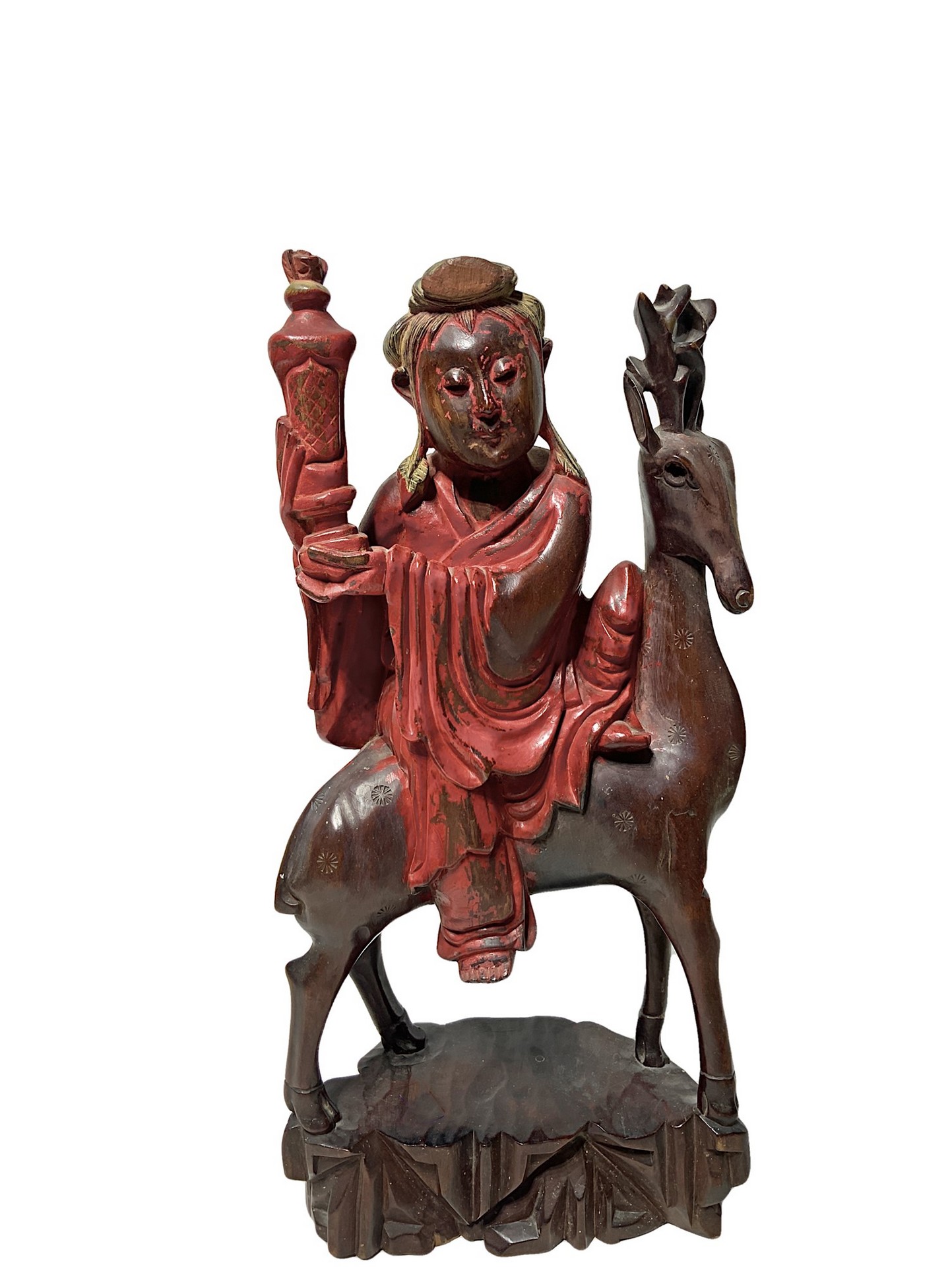 Scultura in legno laccato policromo raffigurante saggio cinese.