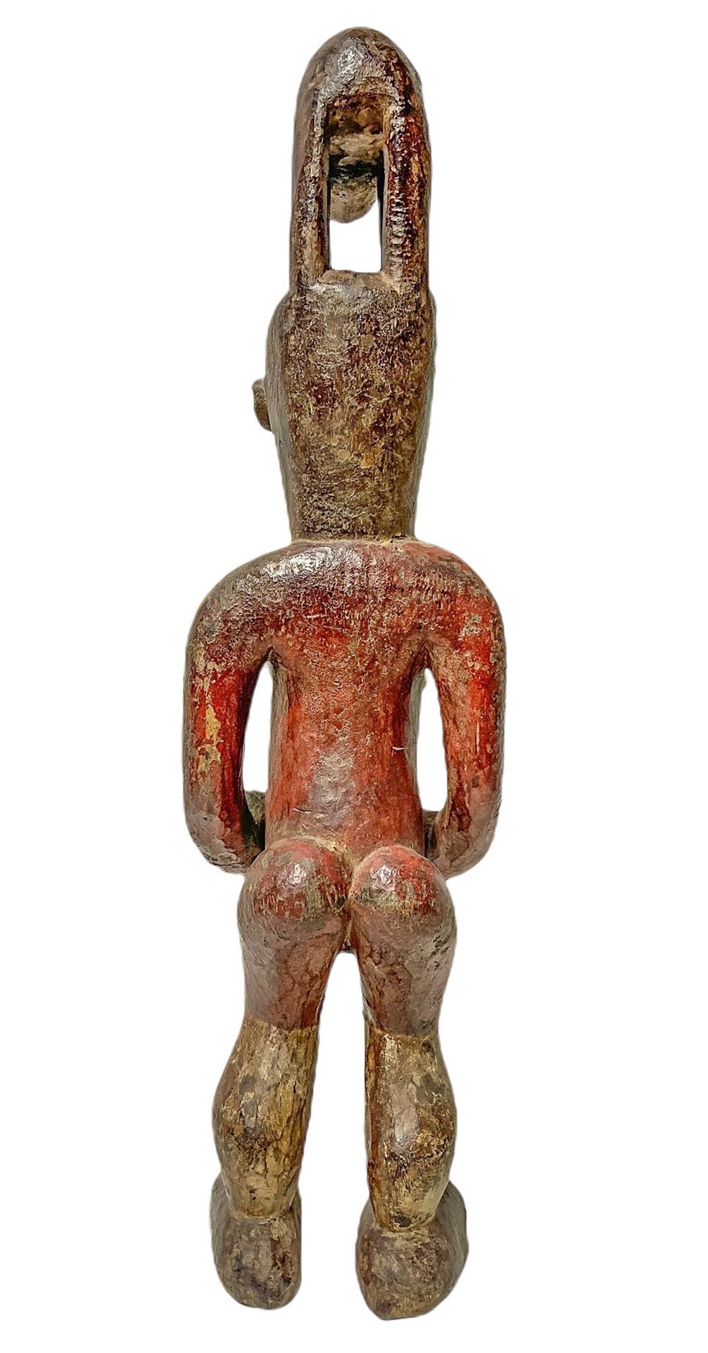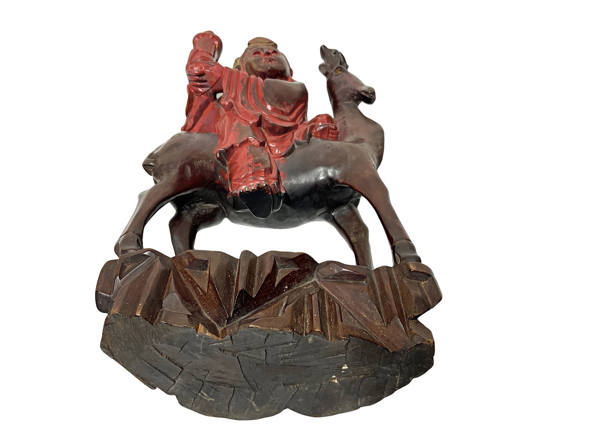 Scultura in legno laccato policromo raffigurante saggio cinese. H 38 cm, base 17x8 cm