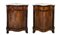 Coppia di angoliere in radica di noce h 105 cm, l 92 cm, p 65 cm Marmo al piano, cassetto in alto e sportello in basso. In una delle due mancanza di una colonnina.Marmo al piano, cassetto in alto e sportello in basso. In una delle due mancanza di una colonnina.