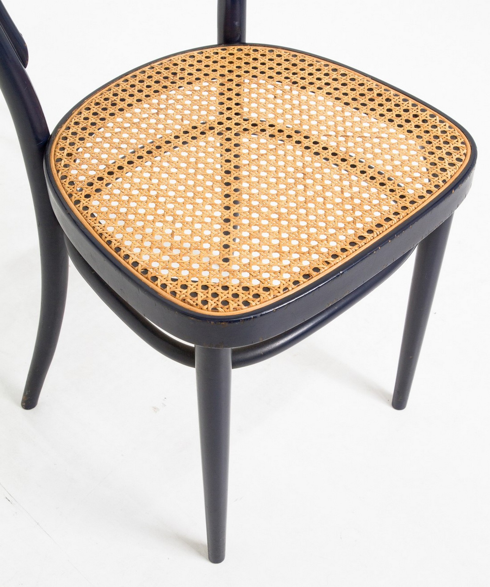 °onet - 8 sedie modello 214, etichetta della manifattura H cm 84x36x41 In faggio curvato a vapore e seduta in paglia di Vienna, colore blu scuro. Segni d'usoIn faggio curvato a vapore e seduta in paglia di Vienna, colore blu scuro. Segni d'uso