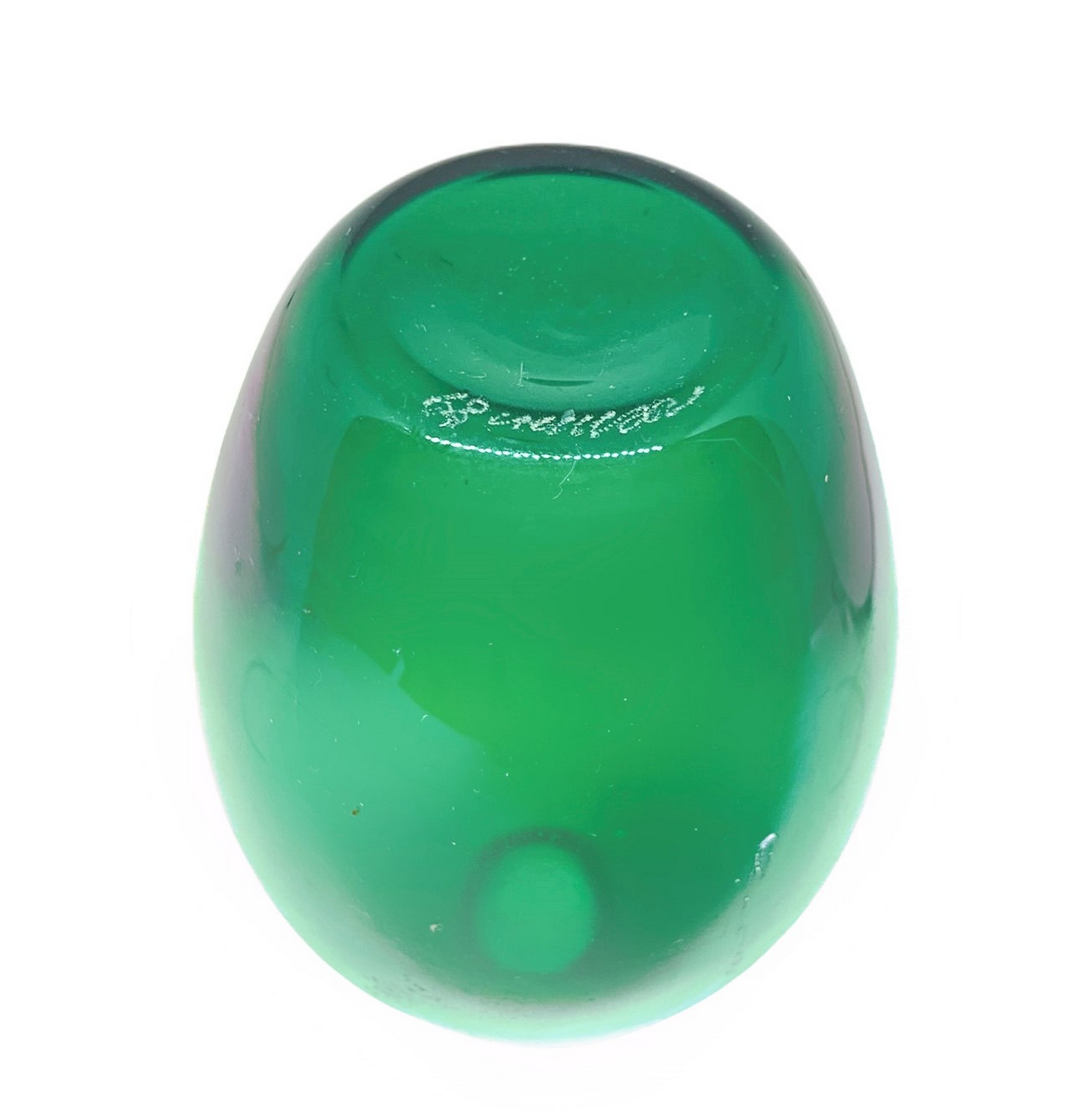 Lot 406 | Venini - Piccola bottiglia verde in vetro di Murano in collaborazione con Laura de Santillana