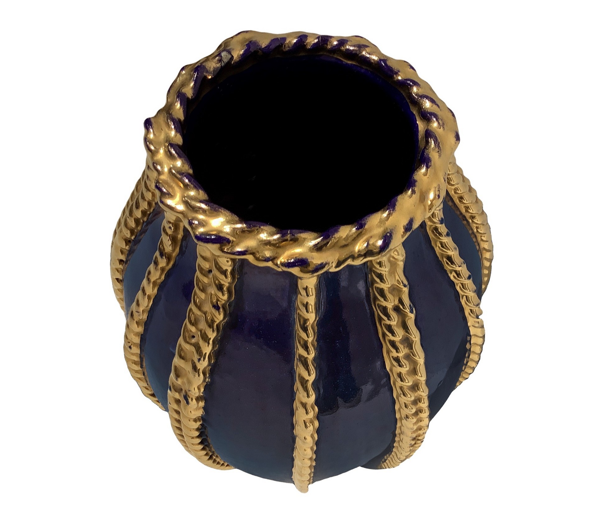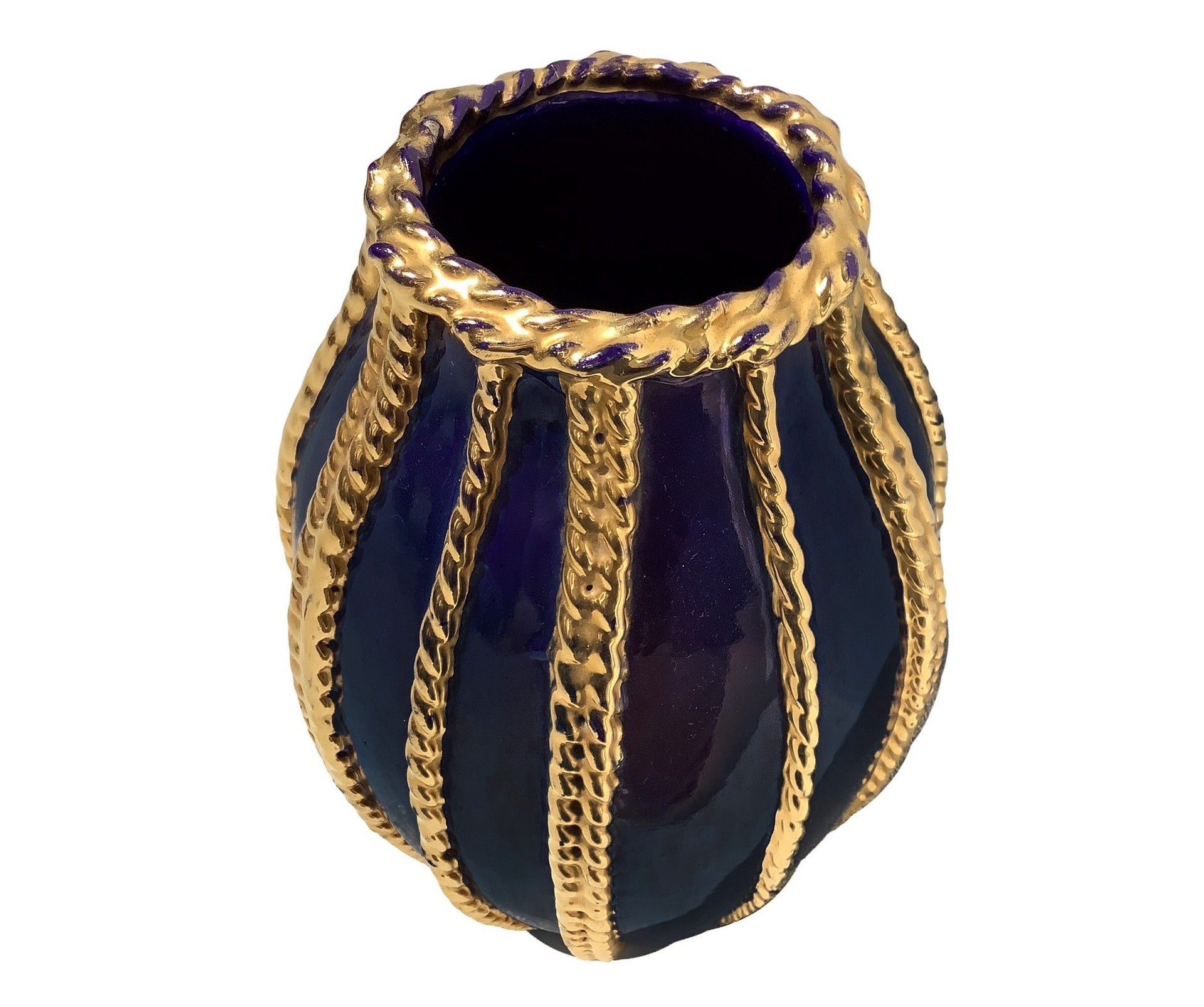 Previous Lot 407 Next Art La Rosa Casa d'Aste - Viale Africa 12, 95129 CATANIA Asta n°35 - Eclettica Asta n°35 - Eclettica Saturday 16 April 2022 hours 16:30 (UTC +01:00) Vaso con fondo blu costolato oro Vaso con fondo blu costolato oro H 34 cm x 9 cm (bocca)