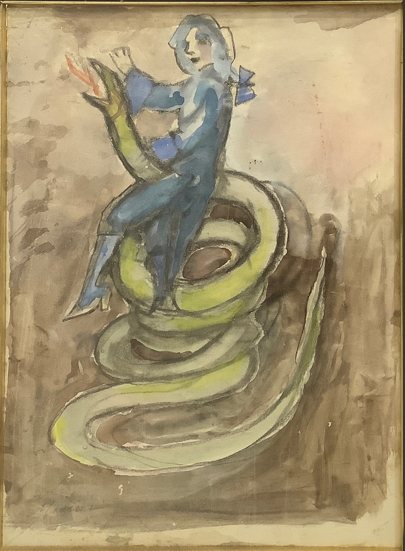 Mino Maccari (Siena 1898-Roma 1989) - Mozart , composizione con figura e animale