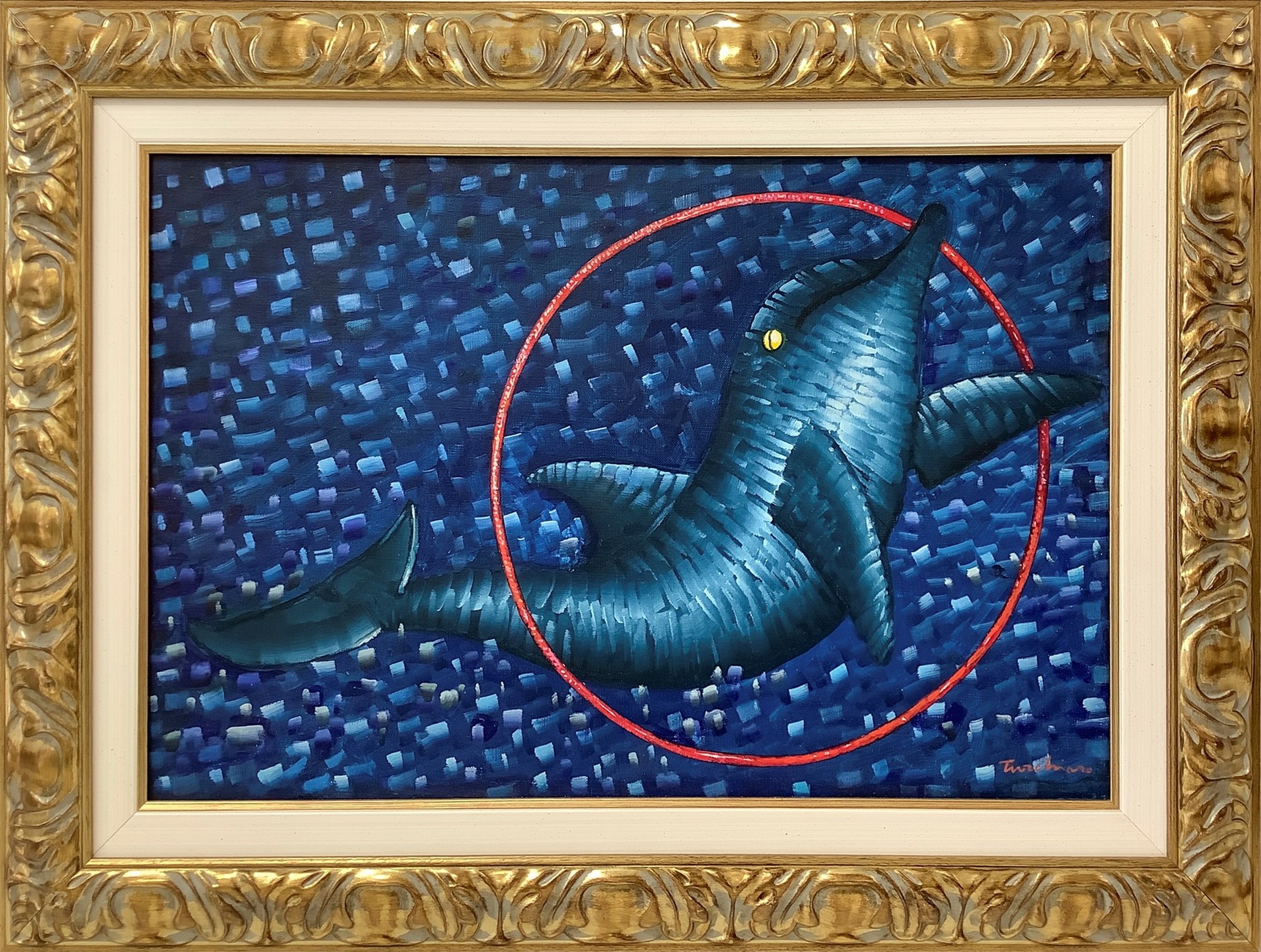 Aldo Turchiaro (Celico 6 aprile 1929) - Delfino al circo, 20° secolo 30x50, in cornice 59x80 cm, Dipinto a olio su tela