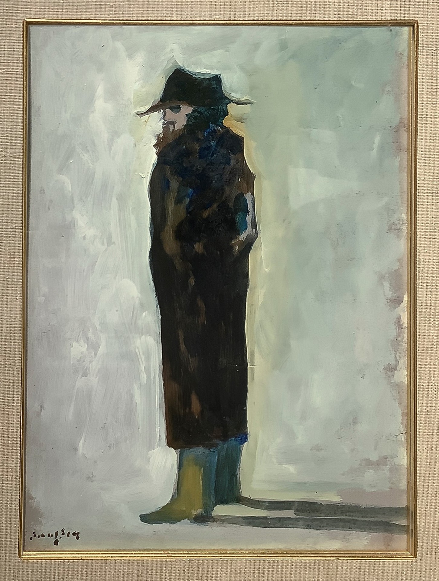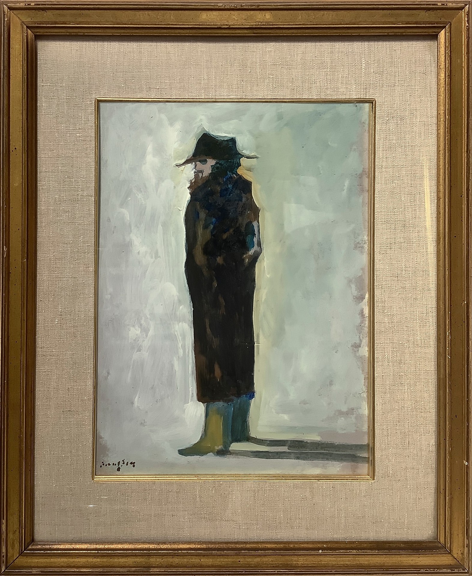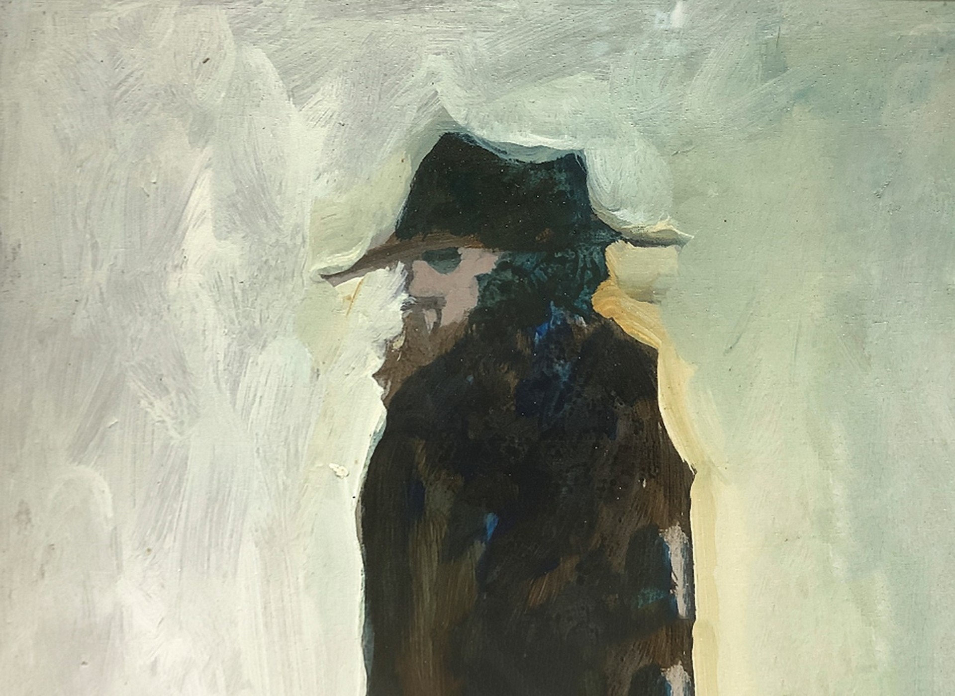 Enrico Benaglia - Uomo con cappello, 1973 cm 40x30 in cornice 58x48 olio su tavoletta Firmato in basso a sinistra Benaglia, Olio su tavoletta raffigurante uomo con capello, datato sul retro 1973.
