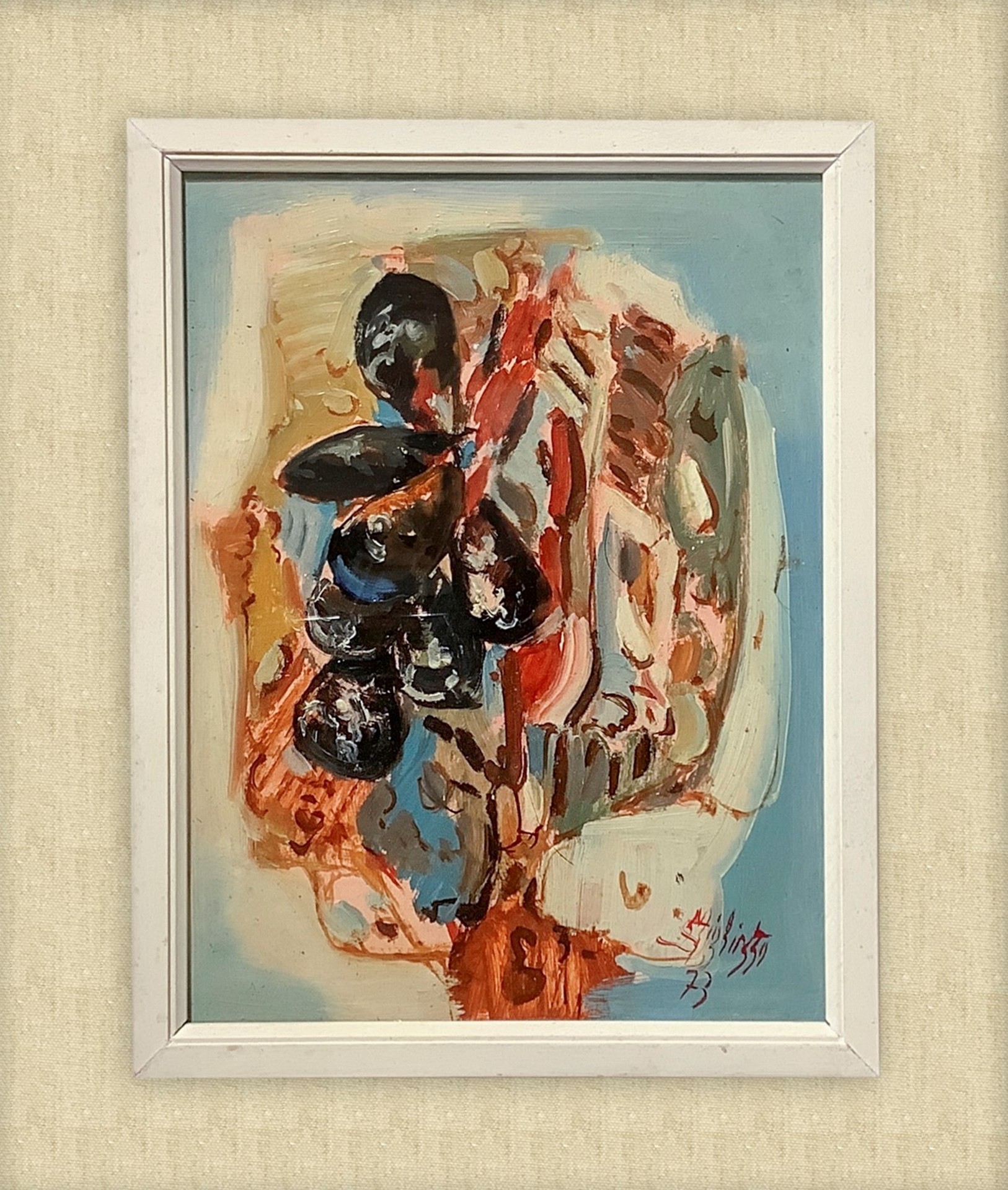 Antonio Mignozzi (Trebisacce 1942) - Composizione astratta 24x18 in cornice 47x41 Olio su tavoletta Firmato in basso a destra. Olio su tavoletta ,composizione astratta. Artista Mignozzi Questo lotto è soggetto a diritto di seguito