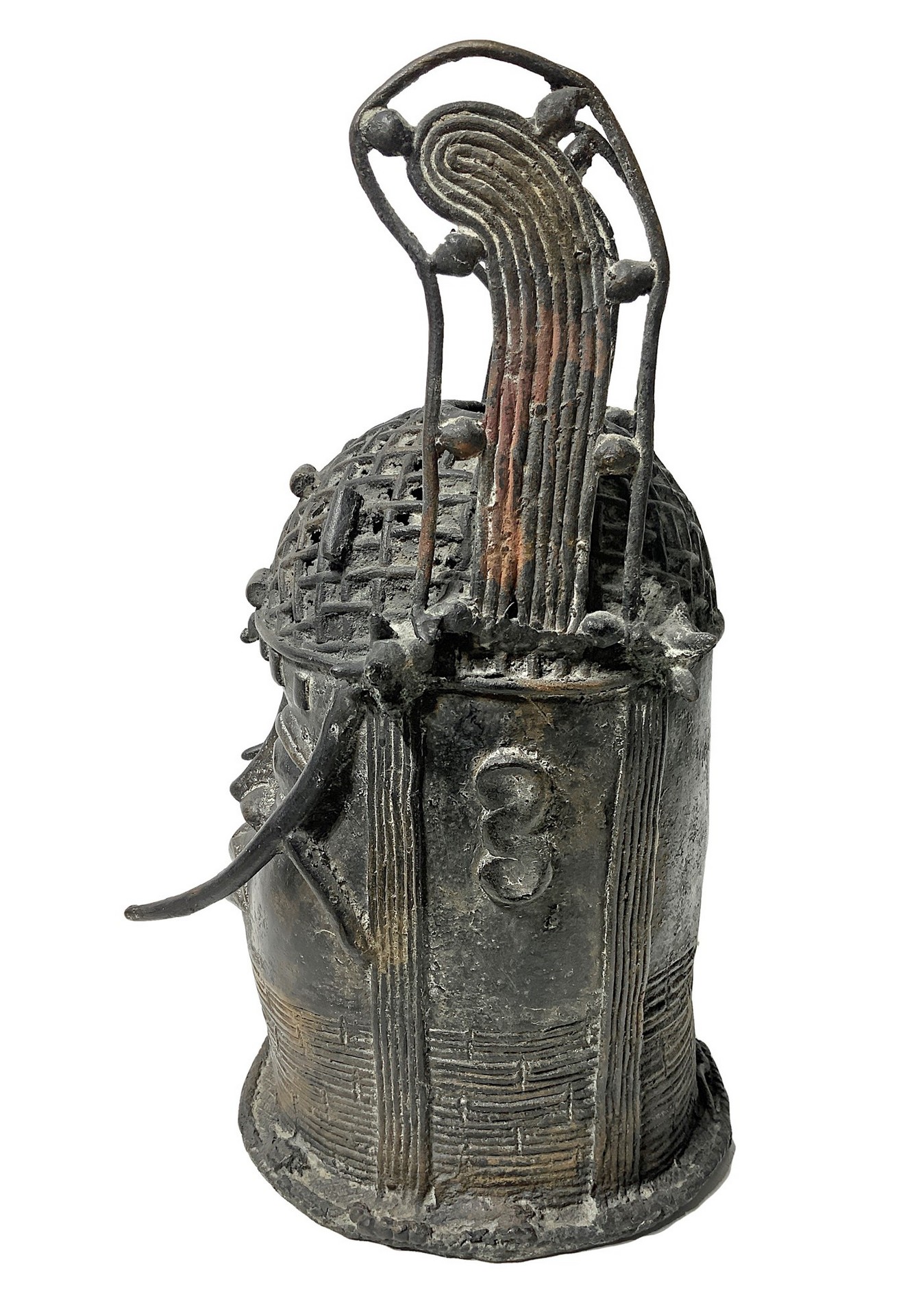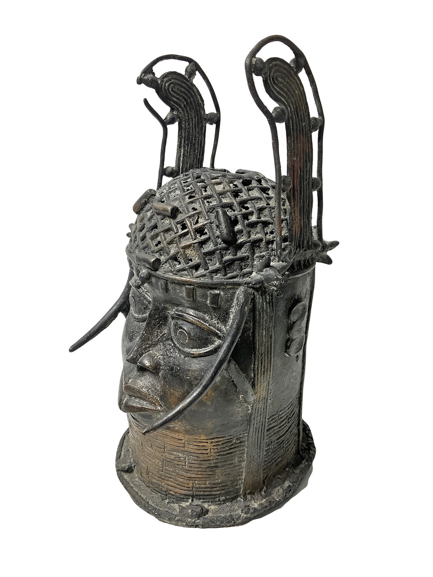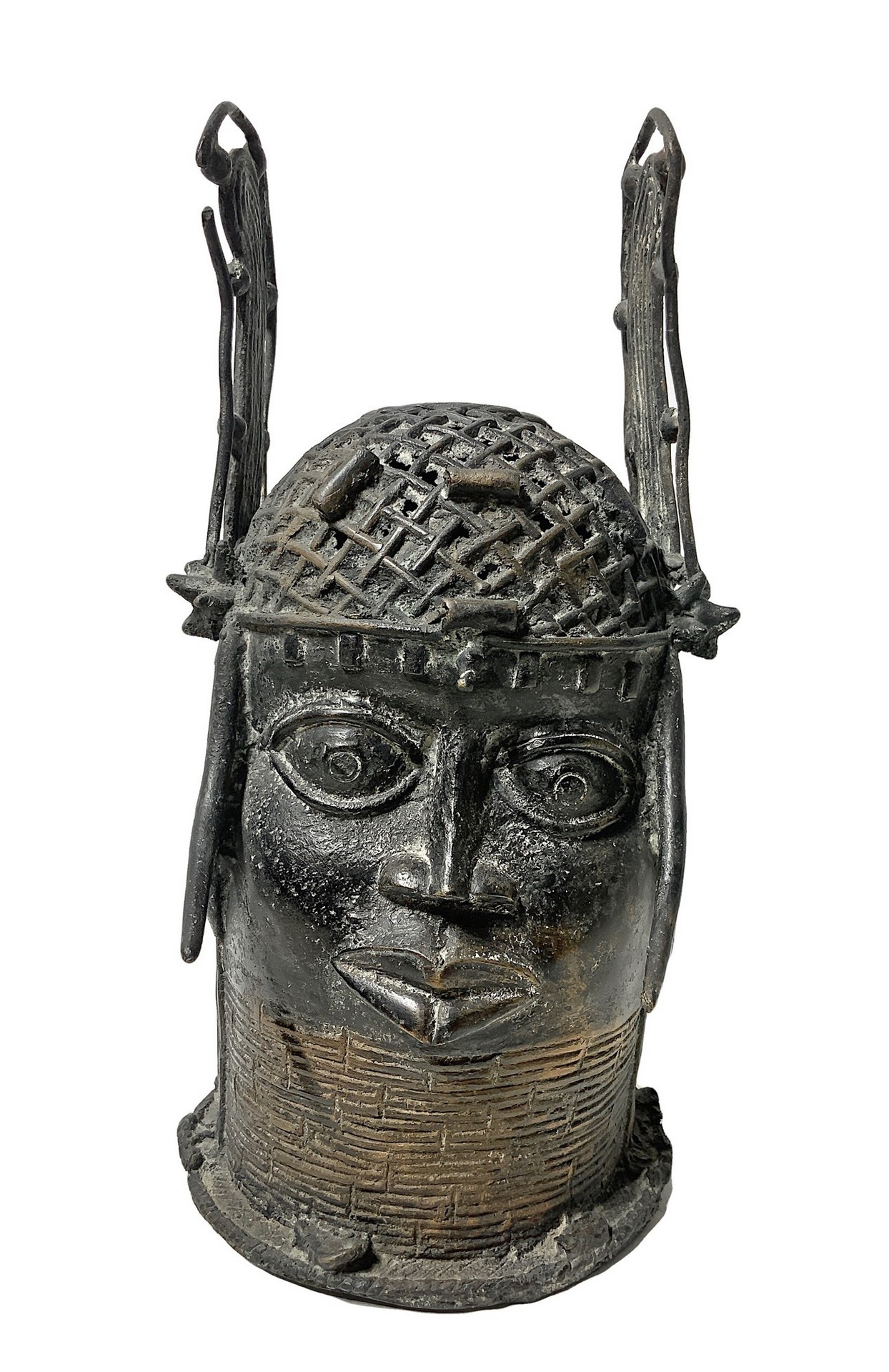 Testa in bronzo, 19° secolo H 44 cm, diametro 21cm Bronzo a cera persa "Memorial Head" del Re Benin. Nigeria Meridionale.