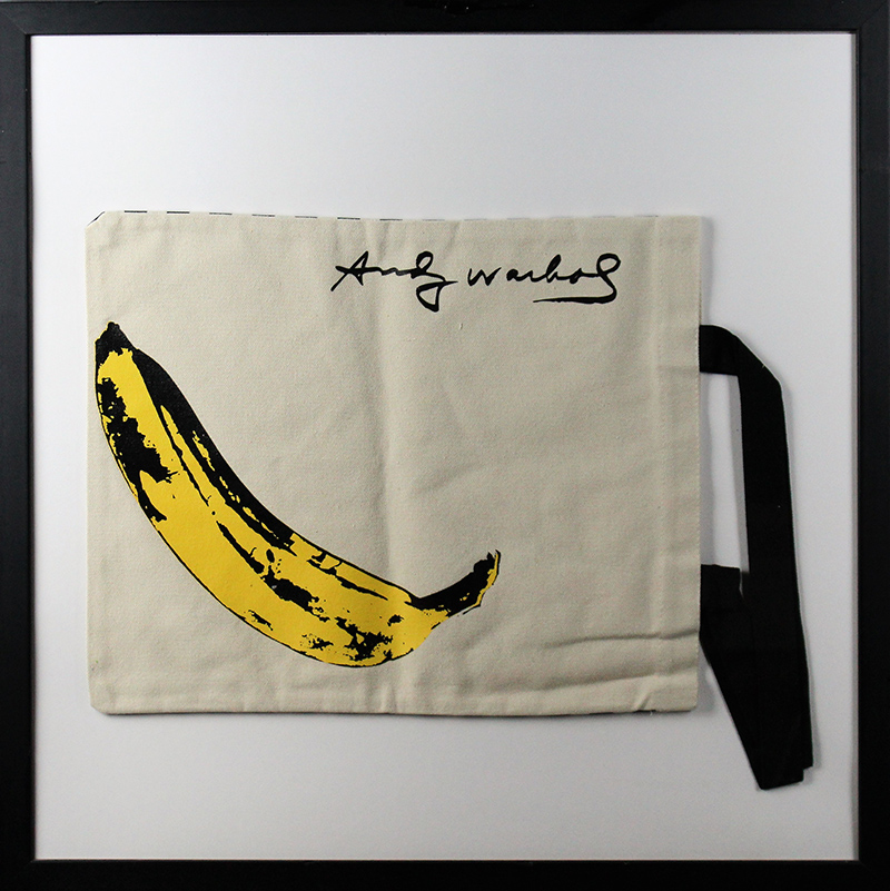 ANDY WARHOL, Senza titolo, Borsa, Dim. 59x59, Al verso: etichetta relativa alla borsa, Opera con cornice