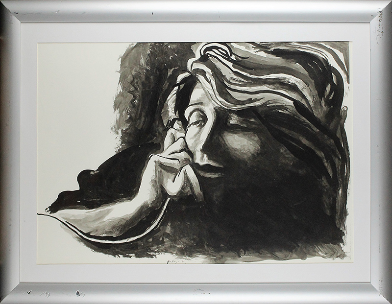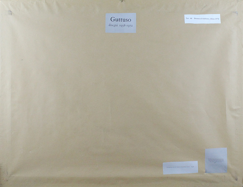 RENATO GUTTUSO, "Donna al telefono", 1970, Grafica in offset - disegni, Dim. 50x70, Raccolta di disegni stampati nel novembre del 1972 a Milano dalle officine grafiche Elli & Pagani su carte fabbricate, Al fronte: datato e firmato in basso al centro, Opera con cornice