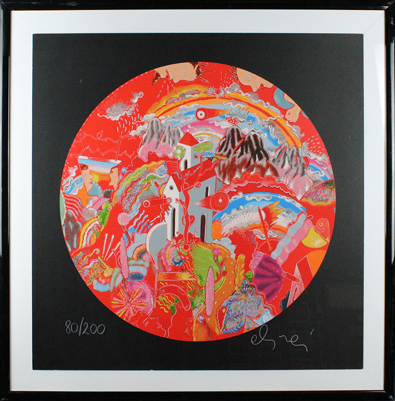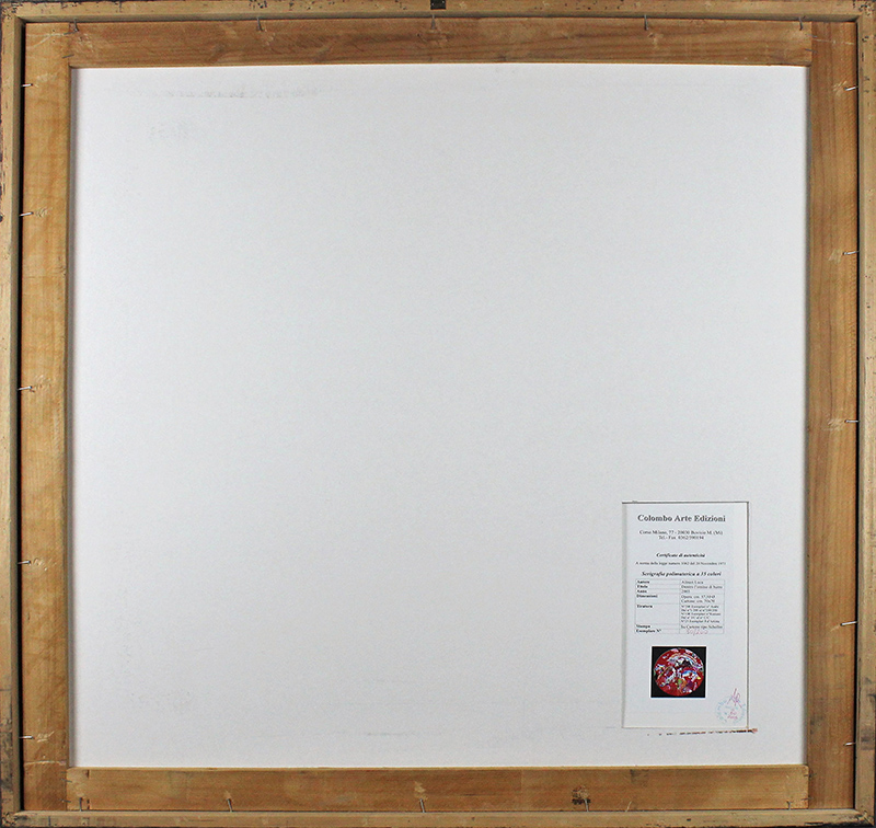 LUCA ALINARI, "Dentro l'omino di burro", 2003, Serigrafia polimaterica a 35 colori, Dim. 70x70, Opera accompagnato da Certificato di Autenticità, Al verso: certificato di autenticità co N° Archivio 802003 e timbro "Colombo Arte Edizioni", Al fronte: esemplare N° 80/200 in basso a sinistra e firmato in basso a destra, Opera con cornice
