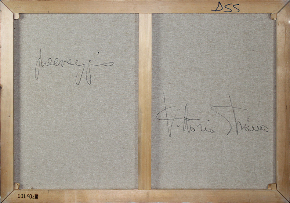 VITTORIO STRANO, "Paesaggio", Olio su tela, Dim. 70x100, Al verso: titolo e firma, Al fronte: firmato in basso al centro, Opera senza cornice